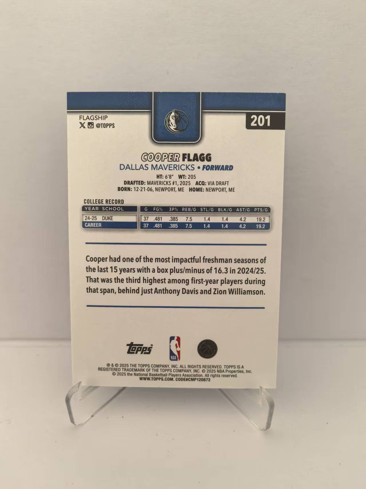 2025 Topps Topps Cooper Flagg RC 美国之子 状元 独行侠 库珀 弗拉格 Topps 元年 蓝闪 卡面精美 未来可期 投资必备 卡品如图 多多Y