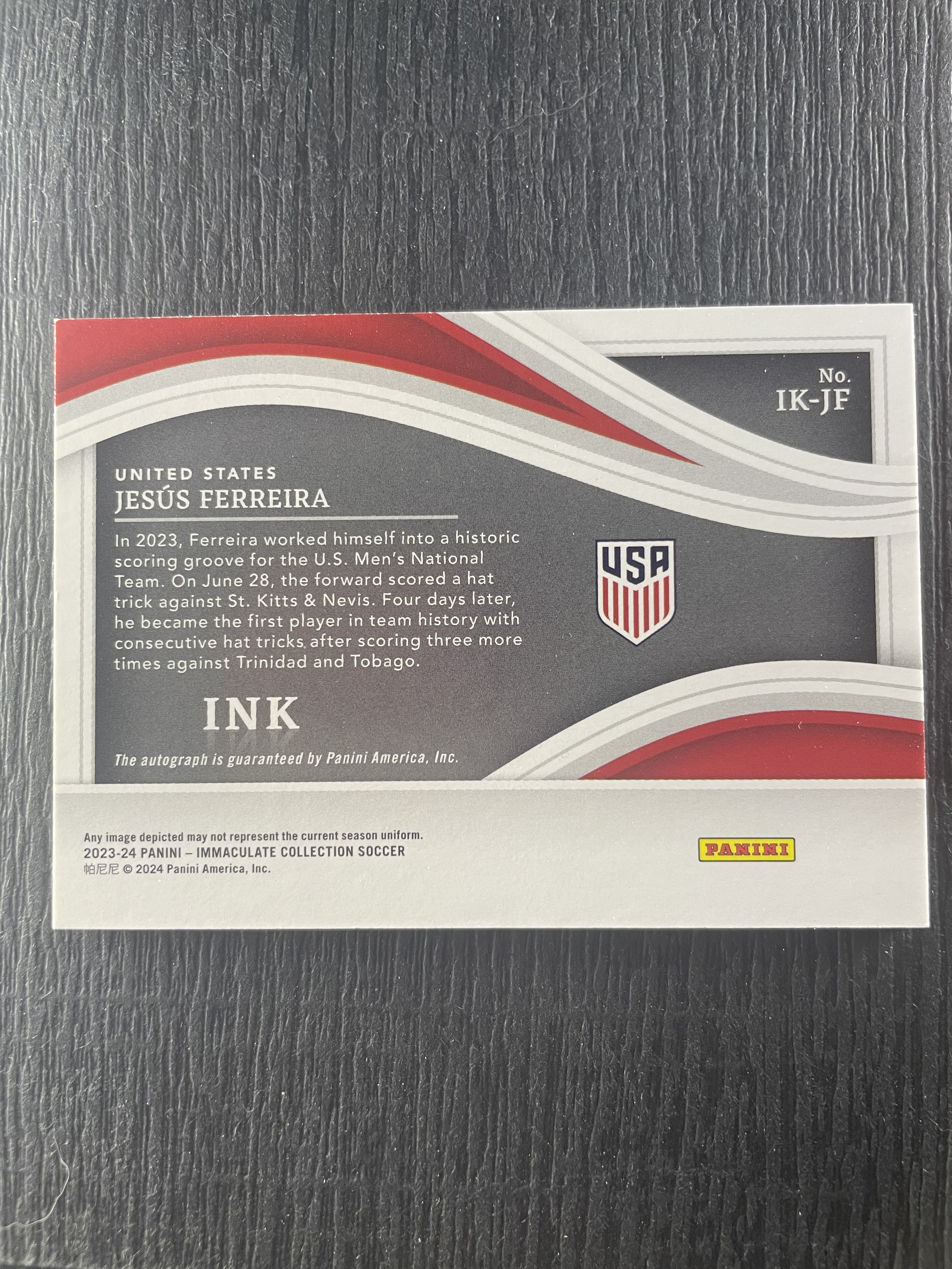 2023-24 Panini Immaculate 99编限量 Collection Soccer Jesús Ferreira 赫苏斯·费雷拉 美国国家队 Ink签卡 USA
