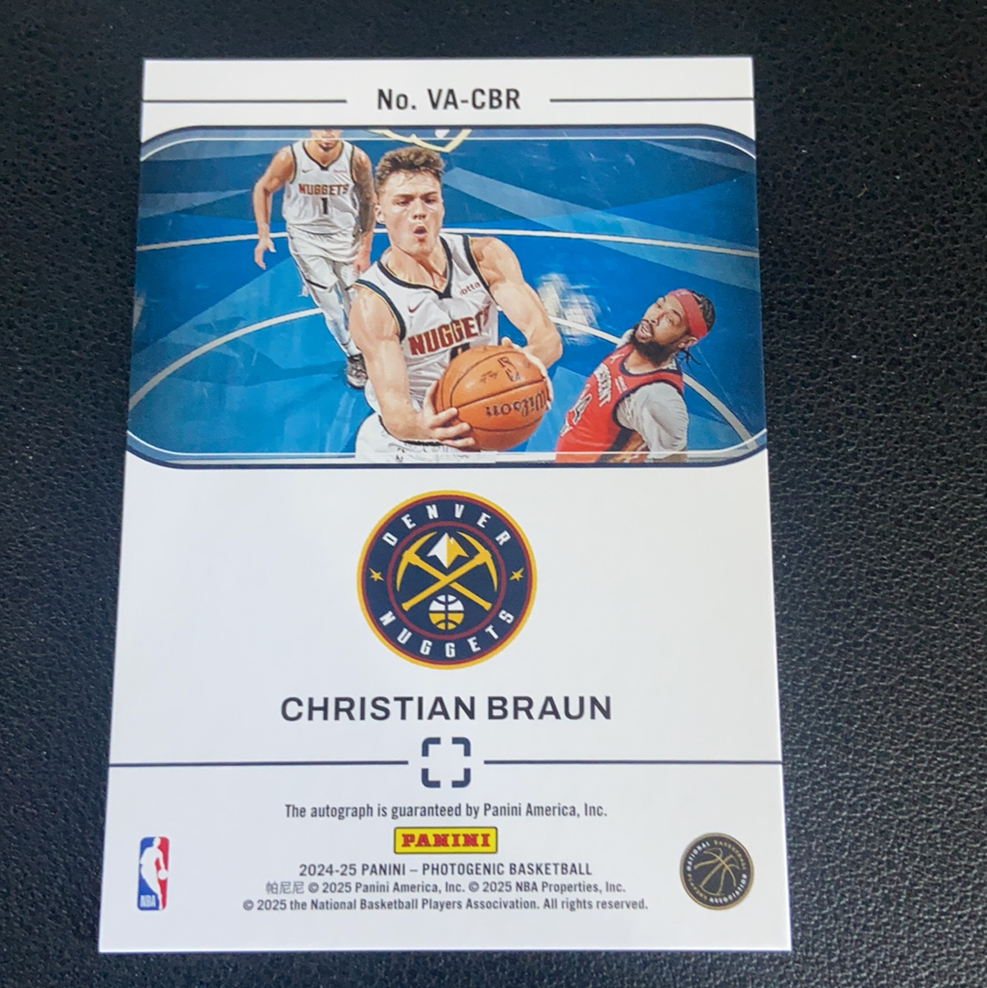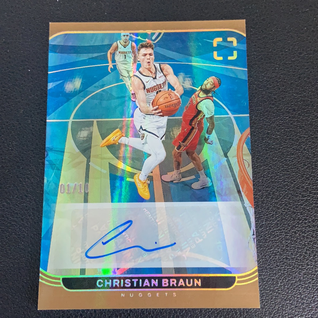 2024-25 Panini PaniniPhotoGenicNBA Christian Braun 上镜 掘金 克里斯蒂安 布劳恩 签字 金折 折射 01/10编 首编 超低编 瑕疵如图