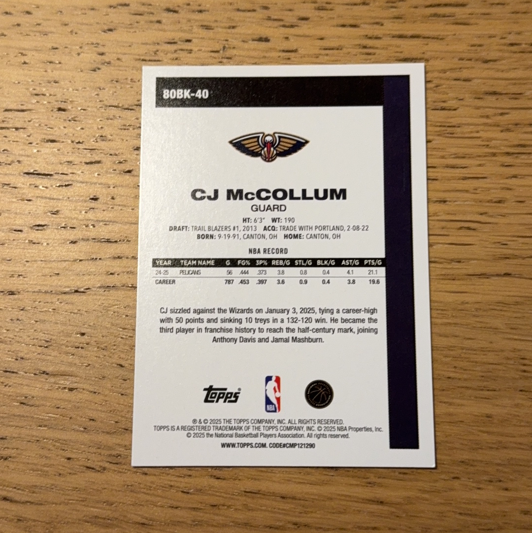2025-26 Topps Basketball CJ McCollum 回归NBA第一款系列 新奥尔良鹈鹕 CJ麦科勒姆 45周年银折 20251026004