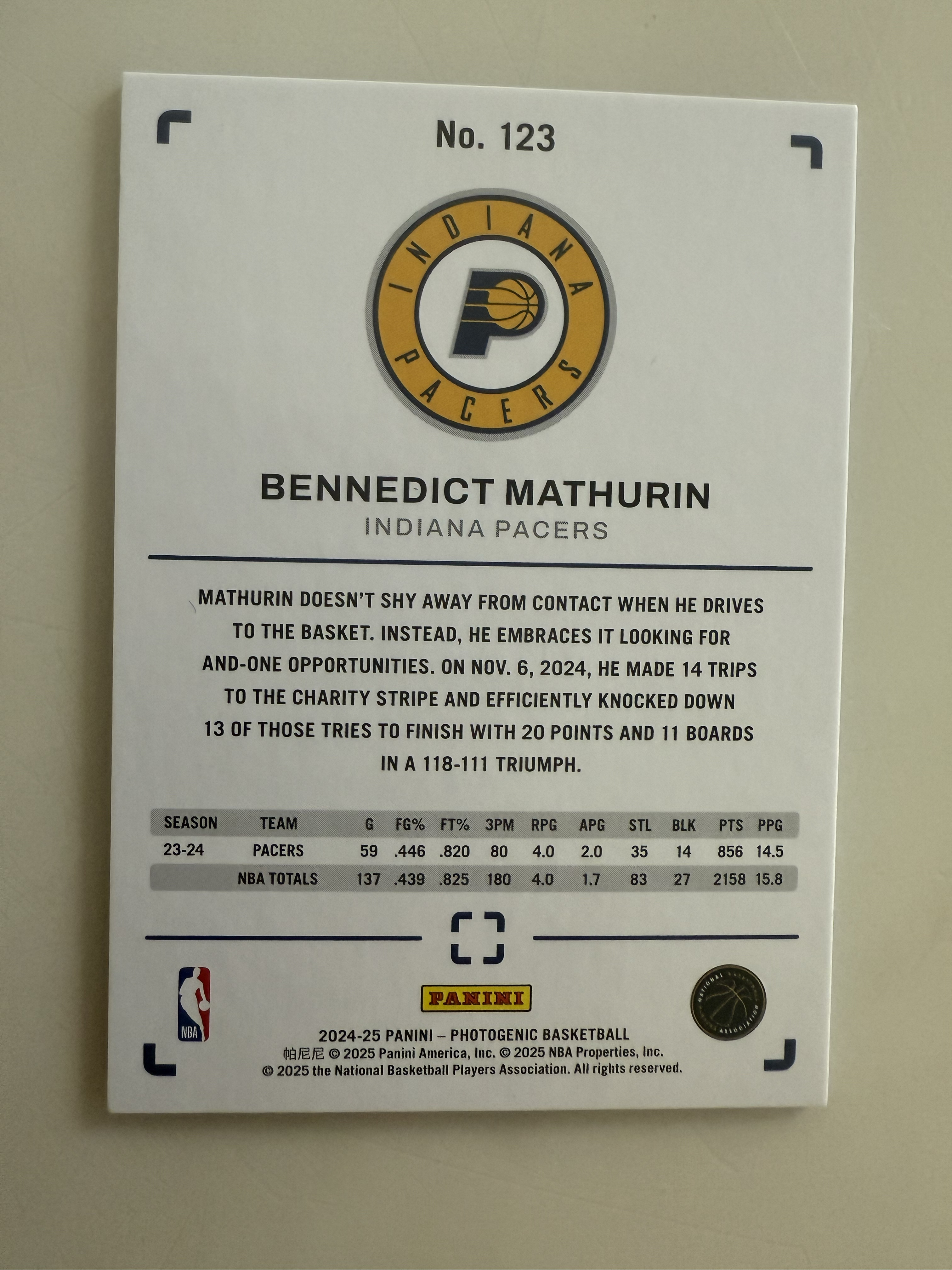 2024-25 Panini PaniniPhotoGenicNBA Bennedict Mathurin 25编 低编 马图林 马瑟林 上镜 步行者 迷宫折 稀有 卡品如图