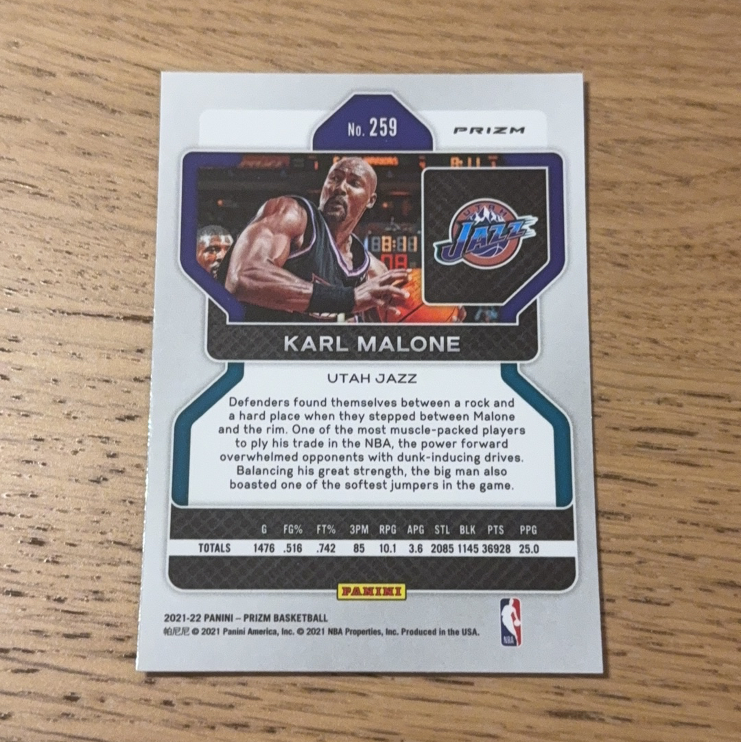 2021-22 Panini Prizm Karl Malone 犹他爵士 邮差卡尔马龙 紫hyper折射 品相如图20251003017