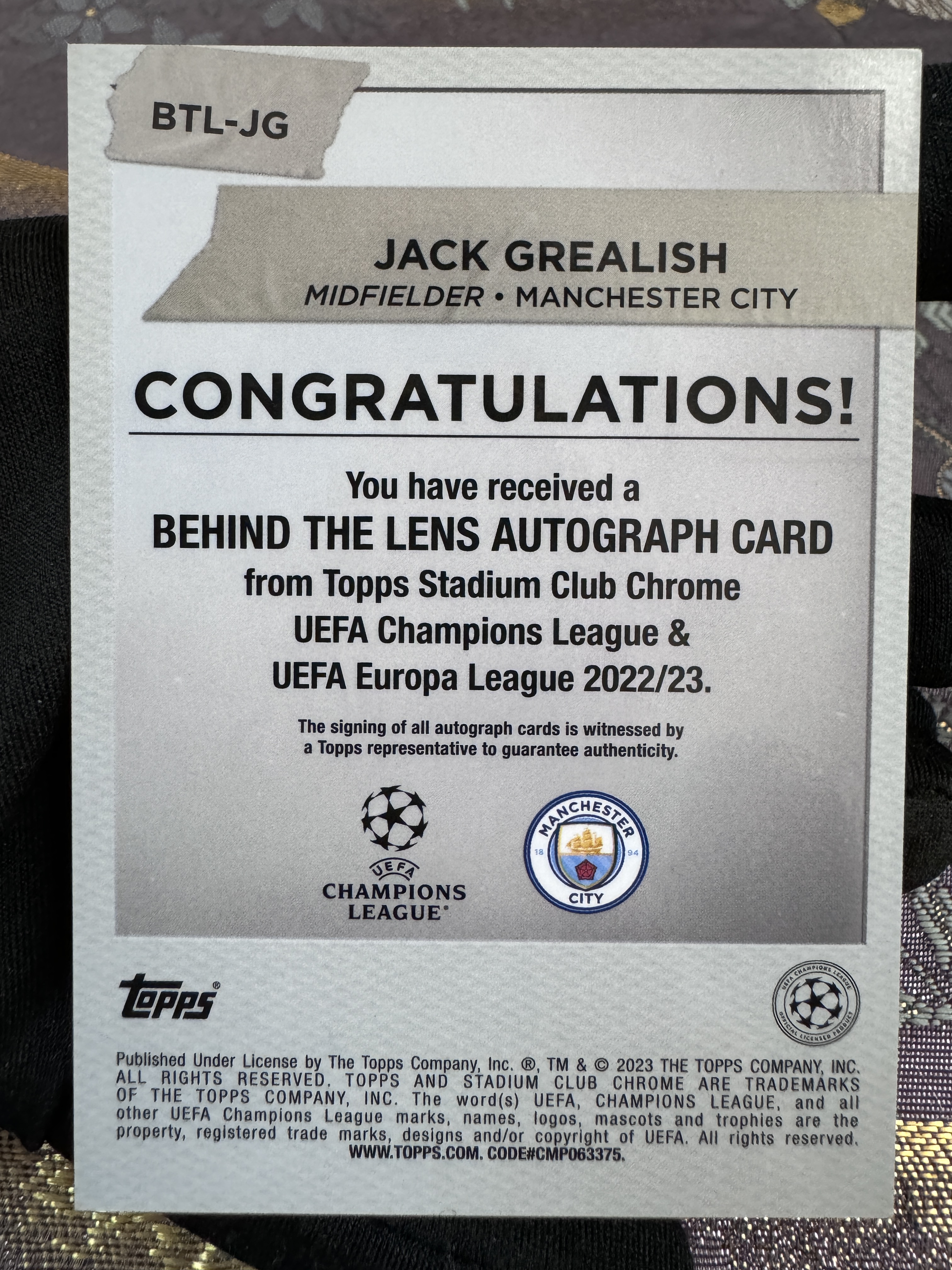 2023 Topps Stadium Club Chrome Jack Grealish 【澈梦北霄】欧冠 竞技场 曼城 三冠王 核心 伟业缔造者 大英帝星 格拉利什 幕后签 签字 完美墨迹 实卡精美