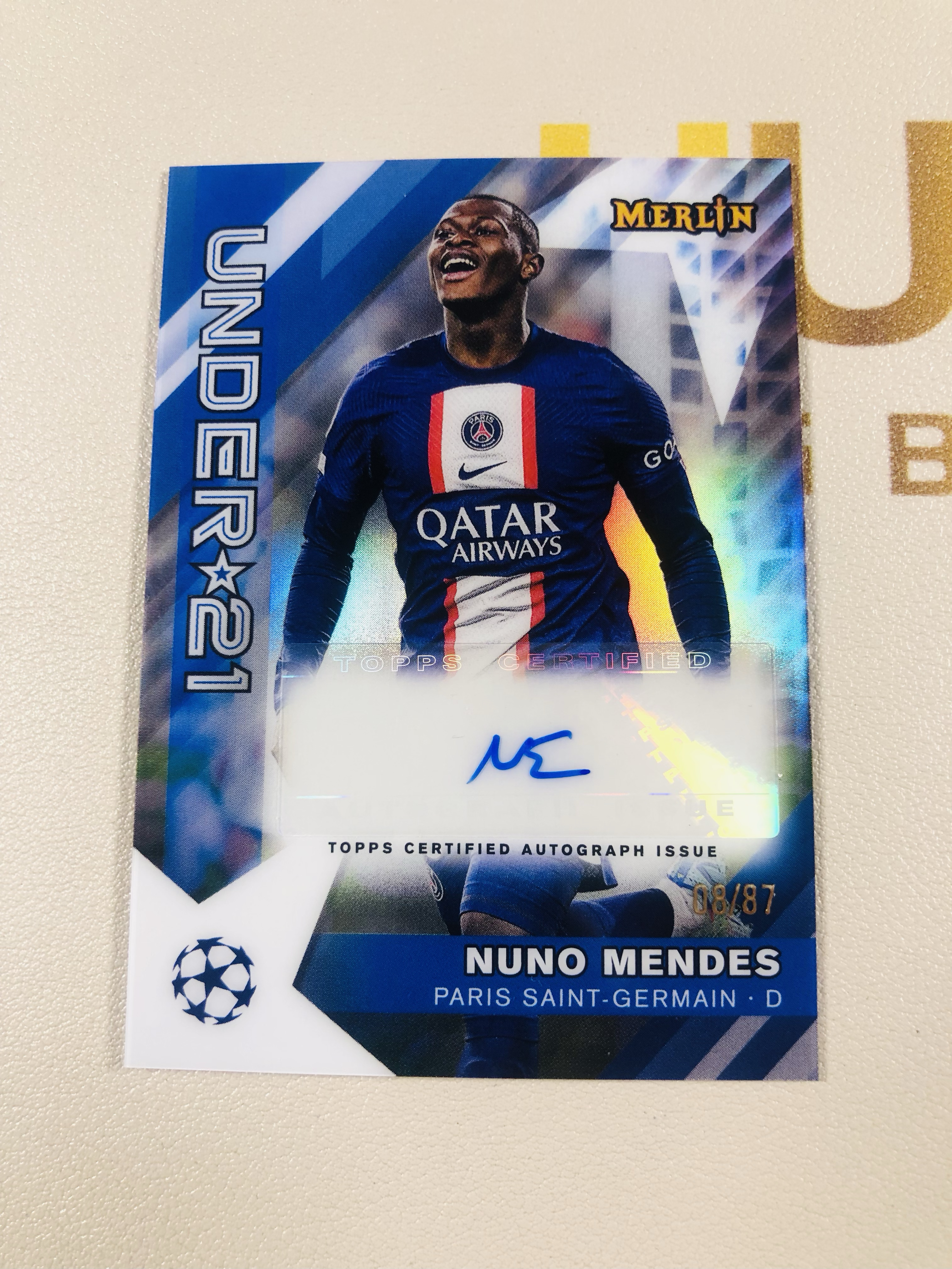 2023 Topps Chrome Nuno Mendes 欧冠 Chrome 梅林 巴黎圣日耳曼 门德斯 08/87编 签字 单卡低于10元无卡夹介意勿拍 磁铁1124