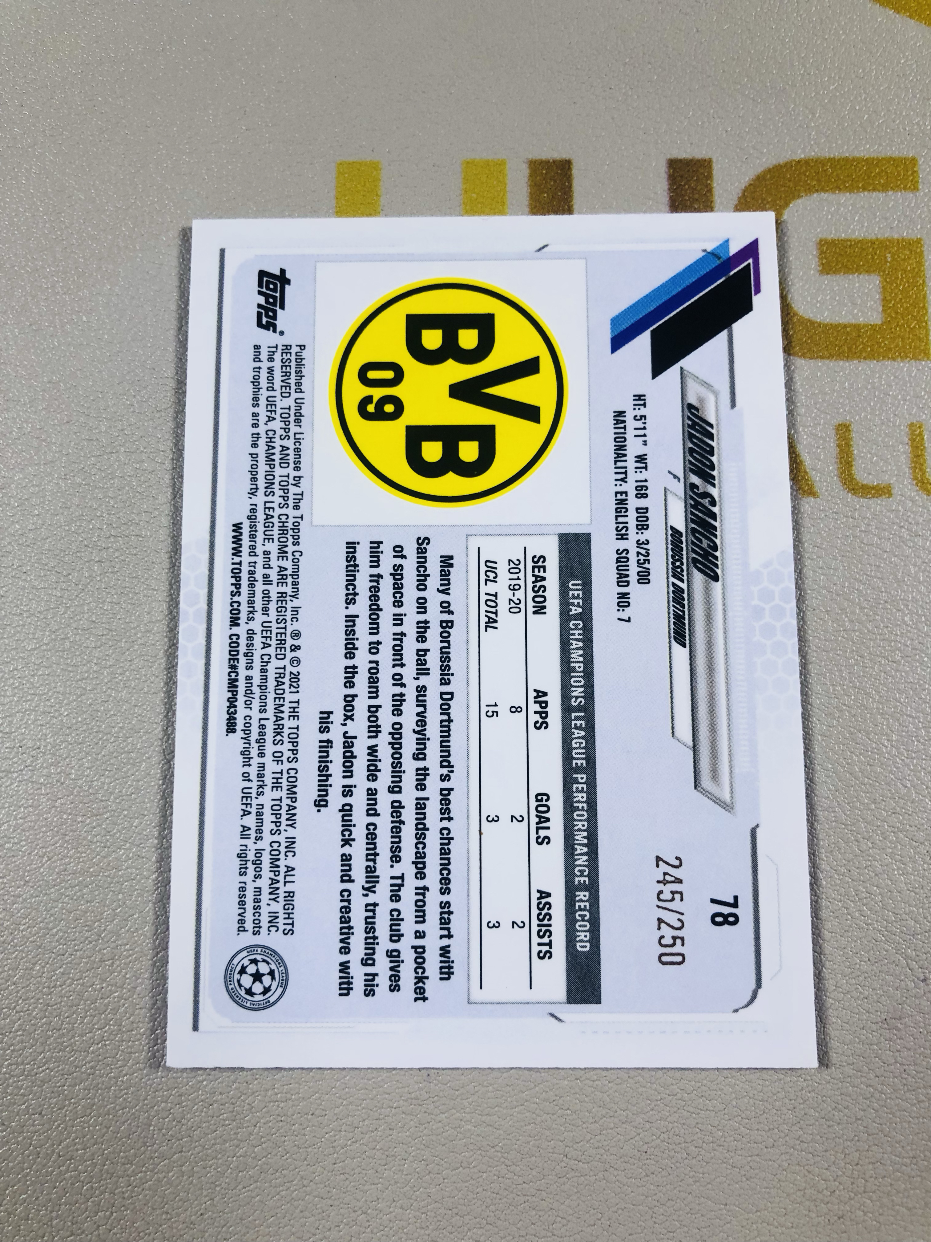 2021 Topps Chrome Jadon Sancho 欧冠 Chrome 多特蒙德 桑乔 250编 单卡低于10元无卡夹介意勿拍 磁铁1124