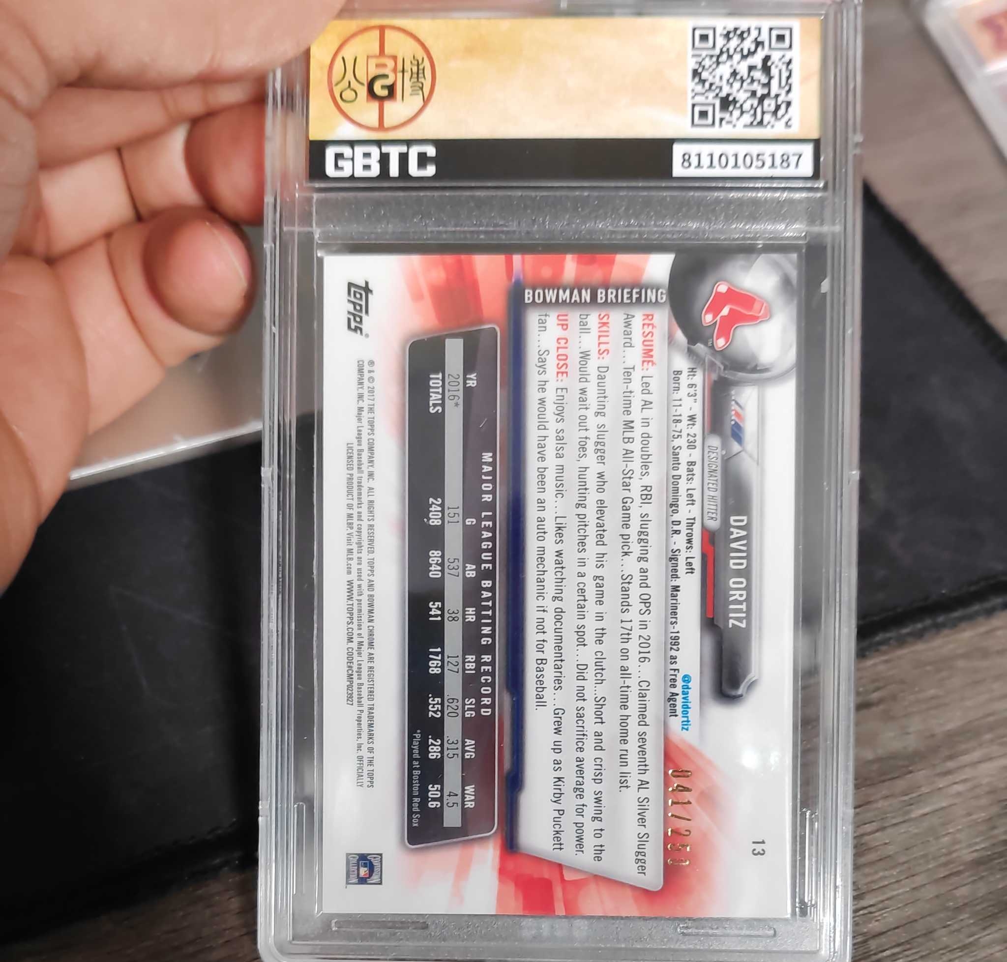 2017 Topps BOWMAN David Ortiz 大卫奥蒂兹 CHROME 正紫折250编 公博9.5分 完美品相 红袜传奇名人堂巨星 老爹退役年选图 收藏佳品 可博 P10