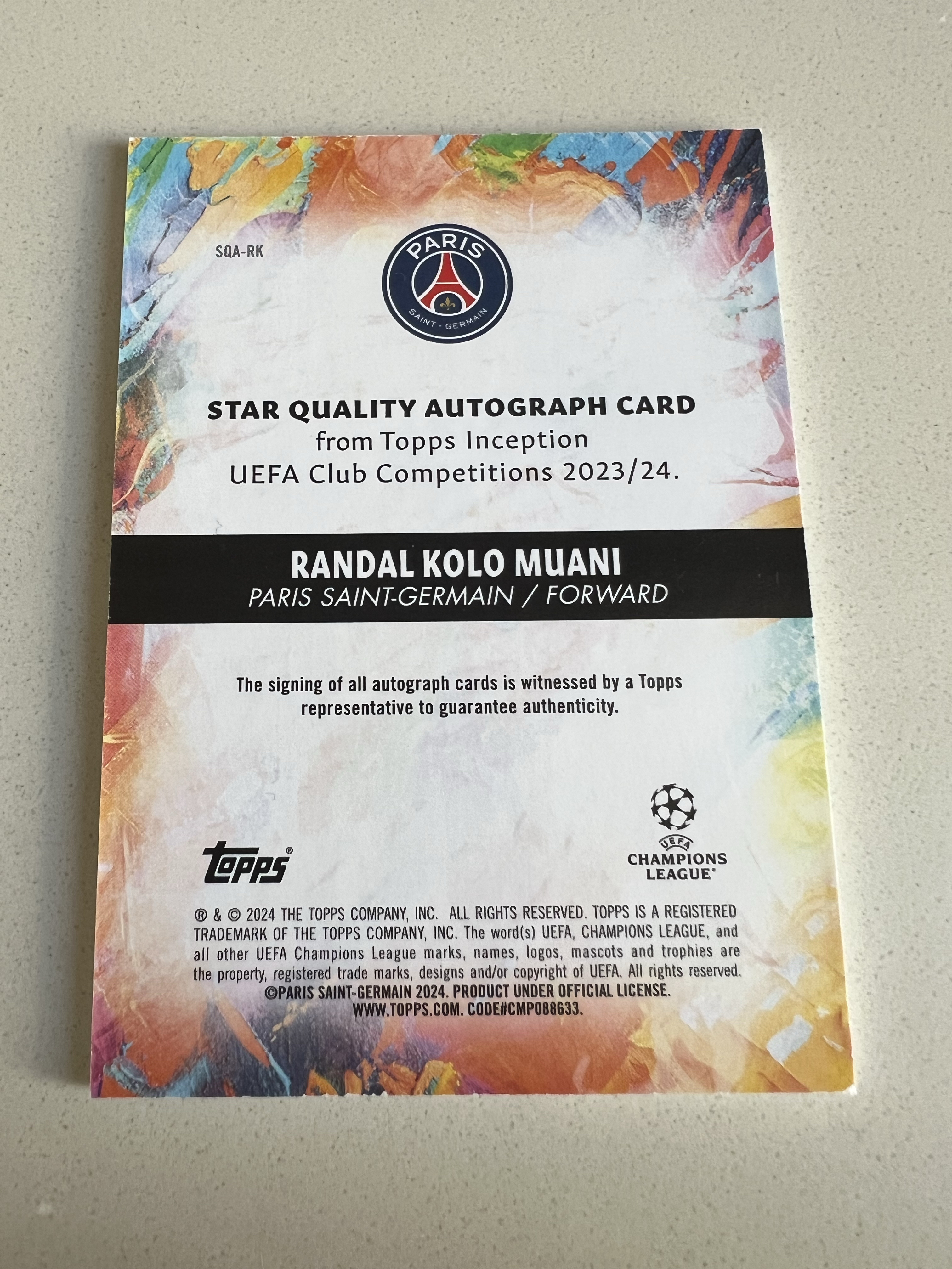 2023-24 Topps 盗梦空间 Randal Kolo Muani inception 科洛 穆阿尼 签字 签名,巴黎尤文图斯 法国 姆巴佩登贝莱队友 限量99编 潜力巨大投资收藏必备
