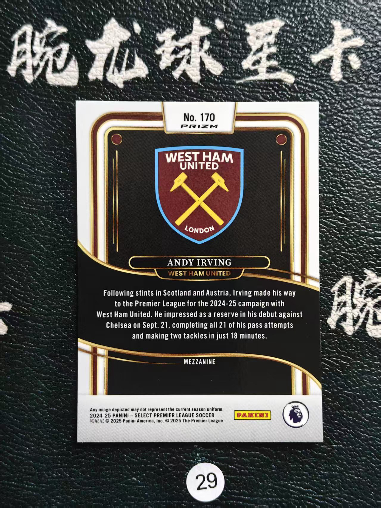 2024-25 【腕龙拍卖 接代卖】 腕龙HanwaiiAR4 Panini Select 英超 安迪 欧文 西汉姆联 RC新秀 孔雀折 大比例 ANDY IRVING 卡品如图 收藏必备