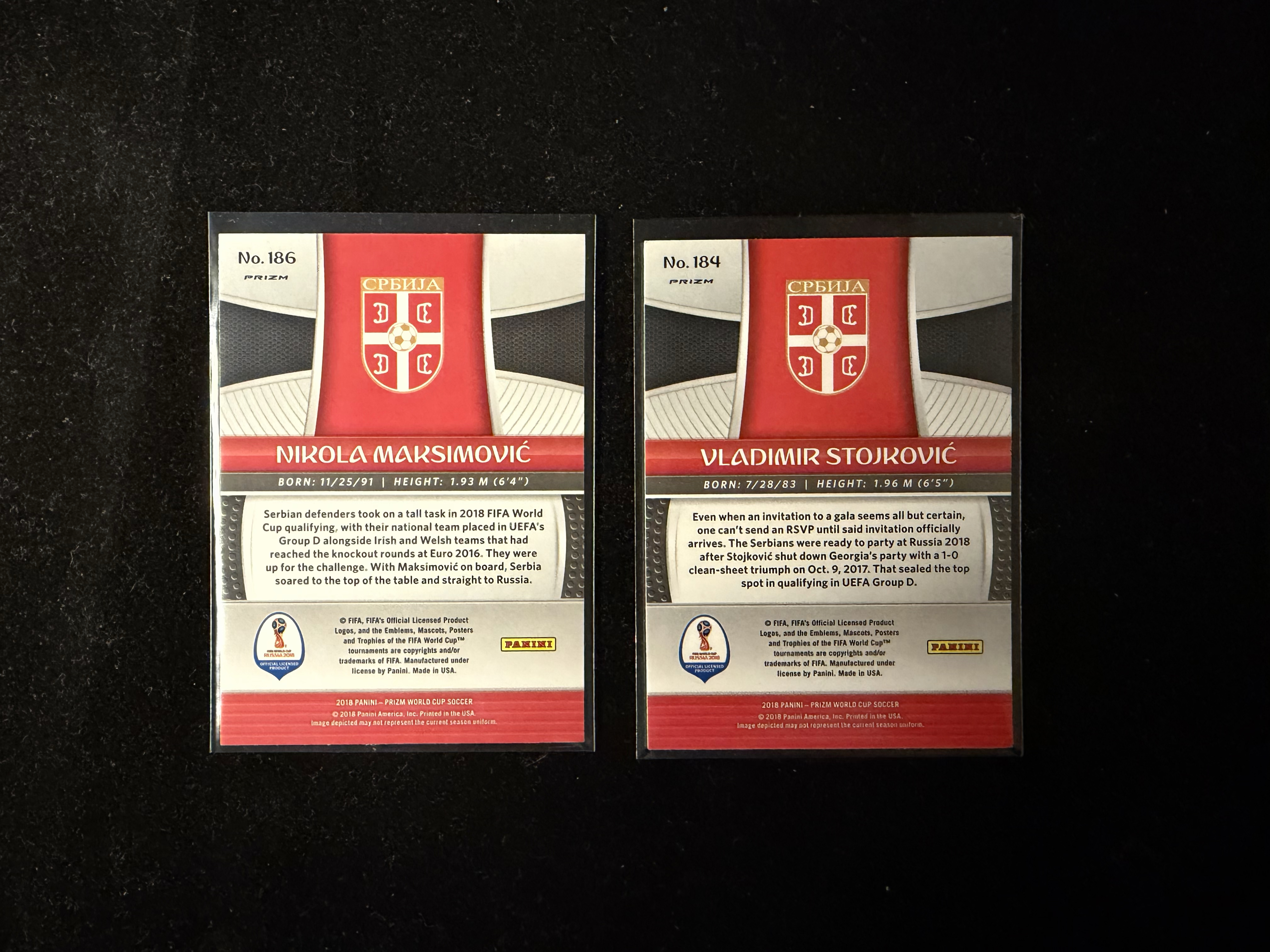 2018 Panini World Cup Prizm Vladimir Stojkovic 世界杯 塞尔维亚 Serbia 斯托伊科维奇 Nikola Maksimovic 红蓝折
