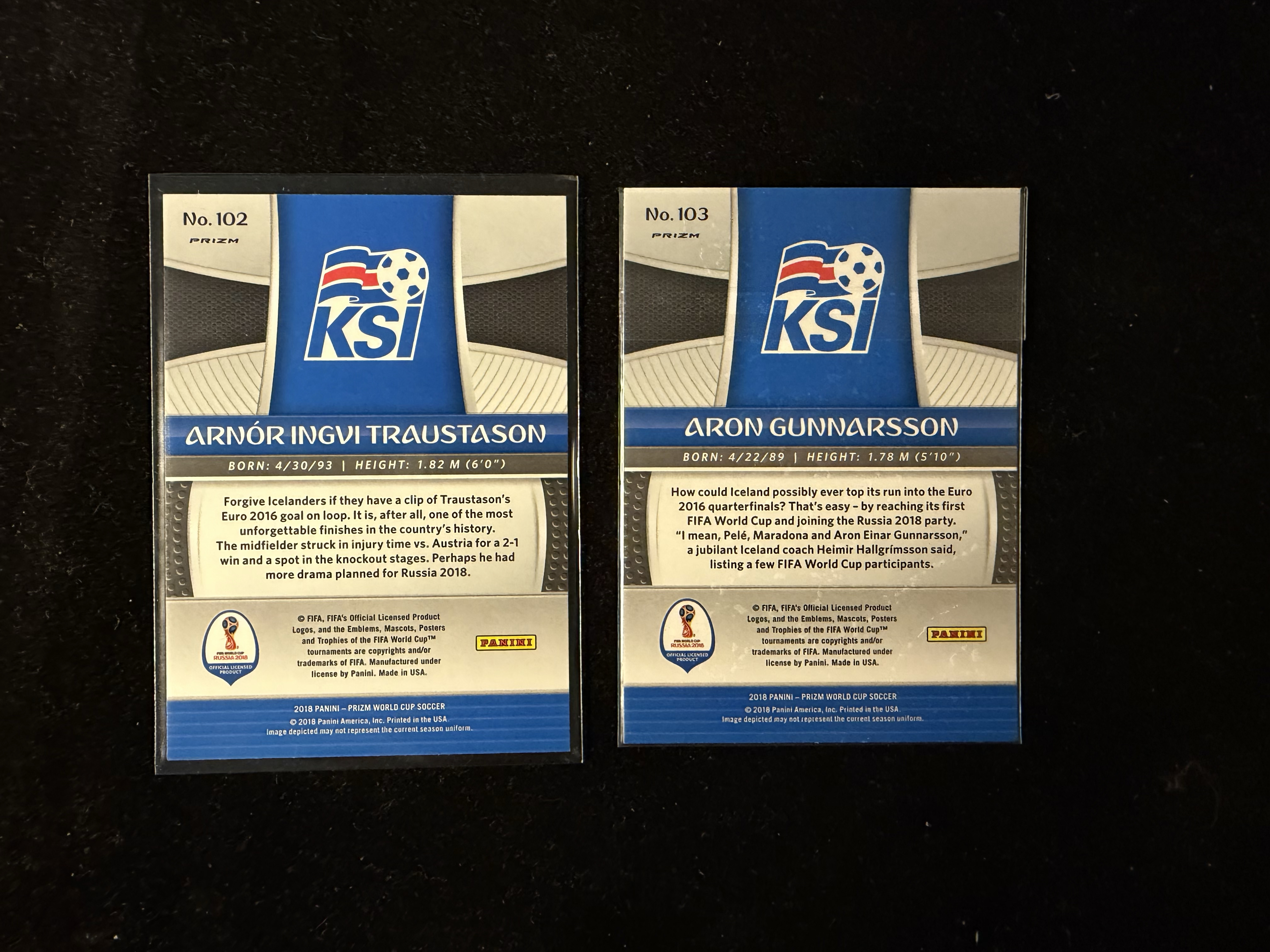 2018 Panini World Cup Prizm Aron Gunnarsson 世界杯 冰岛 Iceland 贡纳松 Arnor Ingvi Traustason 红蓝折