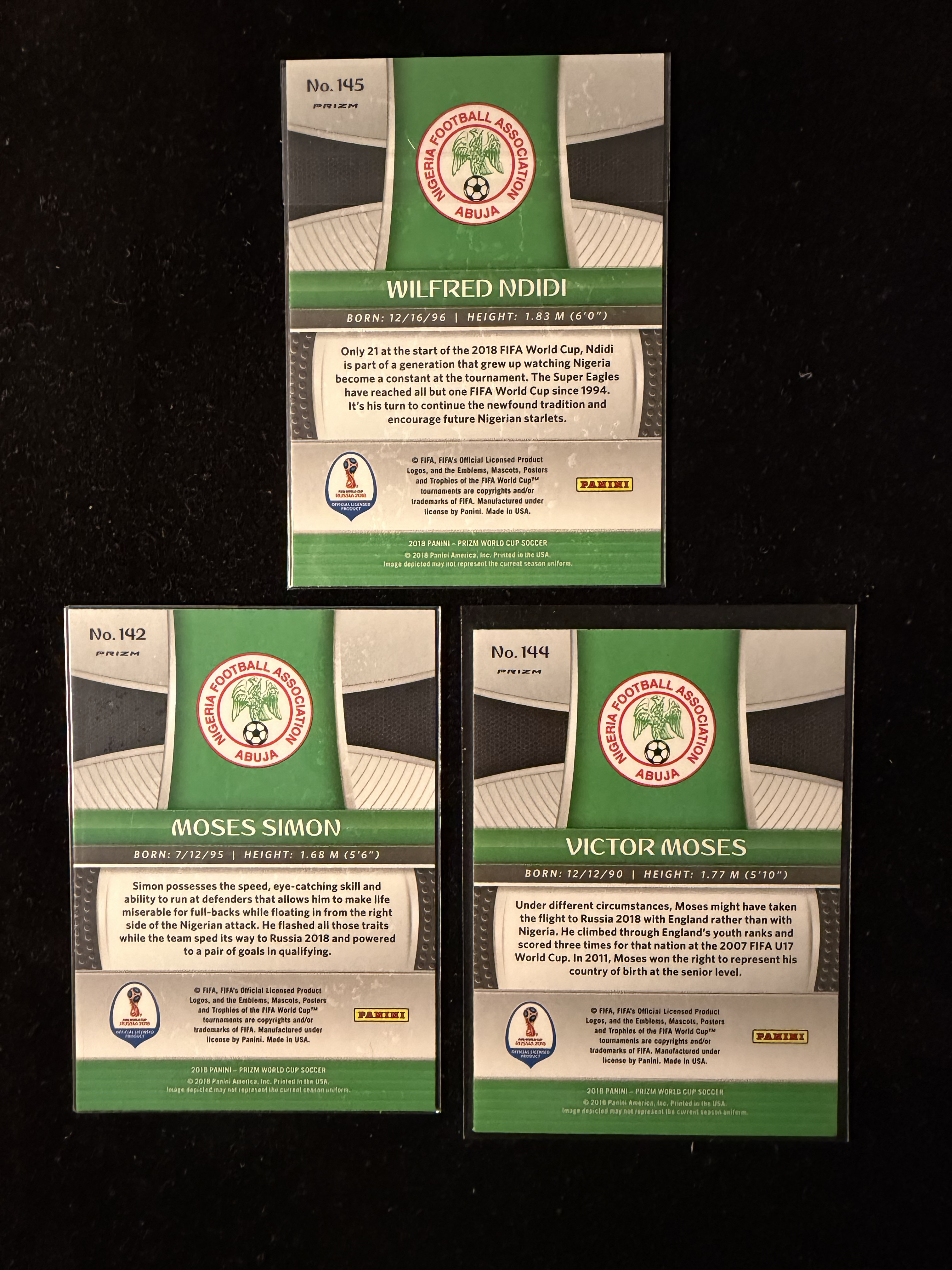 2018 Panini World Cup Prizm Wilfred Ndidi 世界杯 尼日利亚 Nigeria 恩迪迪 Moses Simon 摩西 Victor Moses 红蓝折