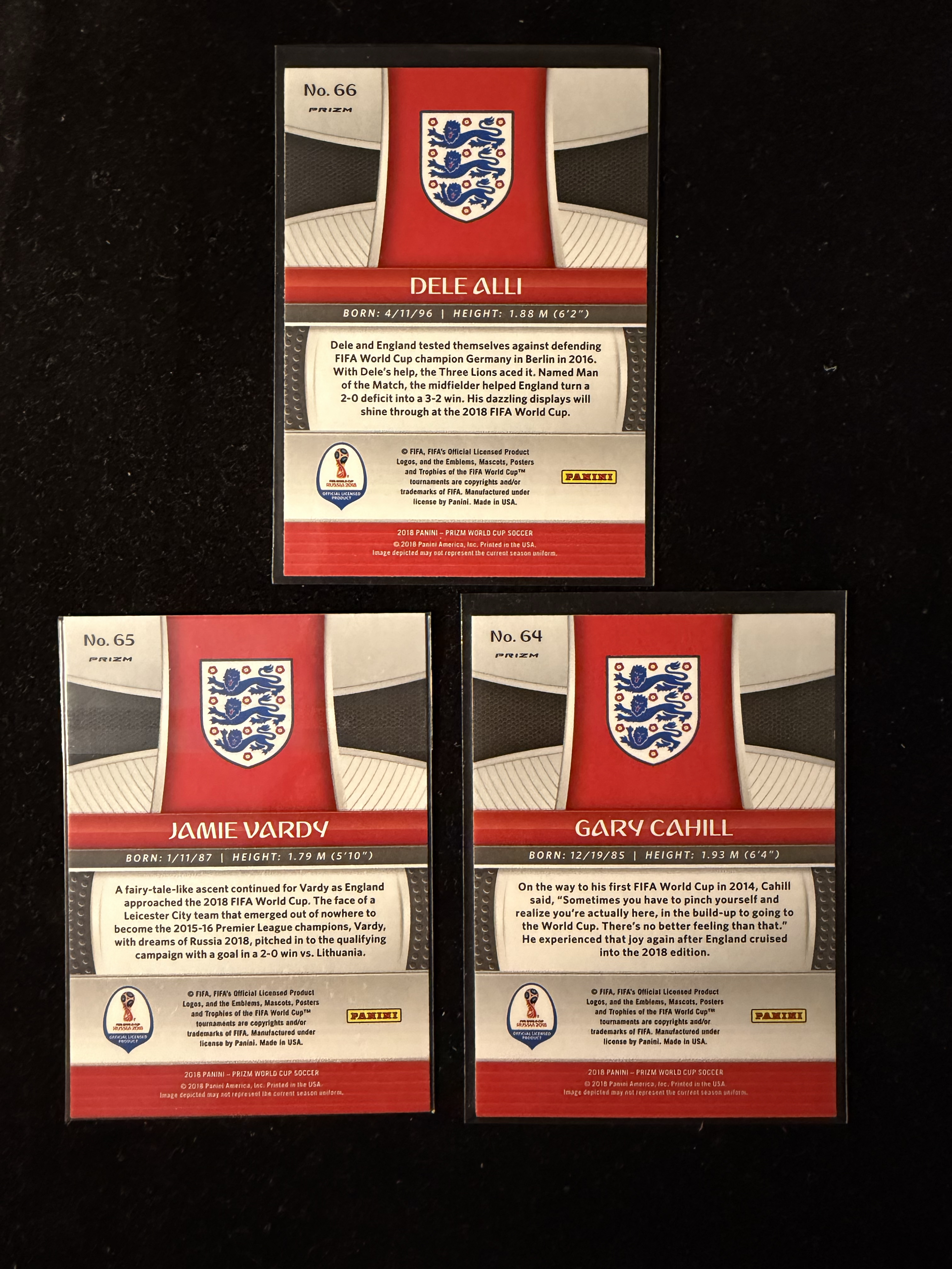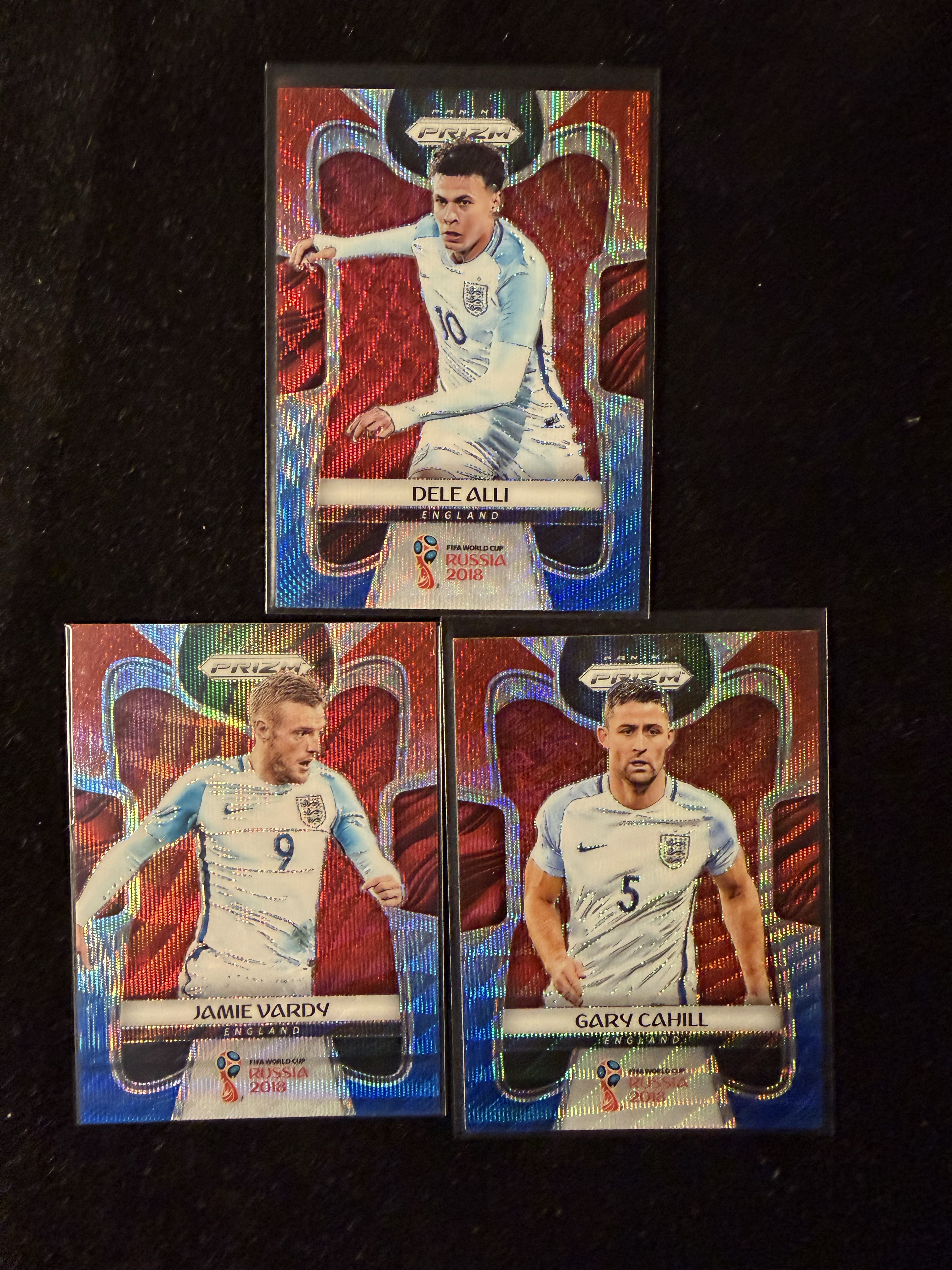 2018 Panini World Cup Prizm Jamie Vardy 世界杯 英格兰 England 瓦尔迪 Dele Alli 阿里 Gary Cahill 卡希尔 红蓝折