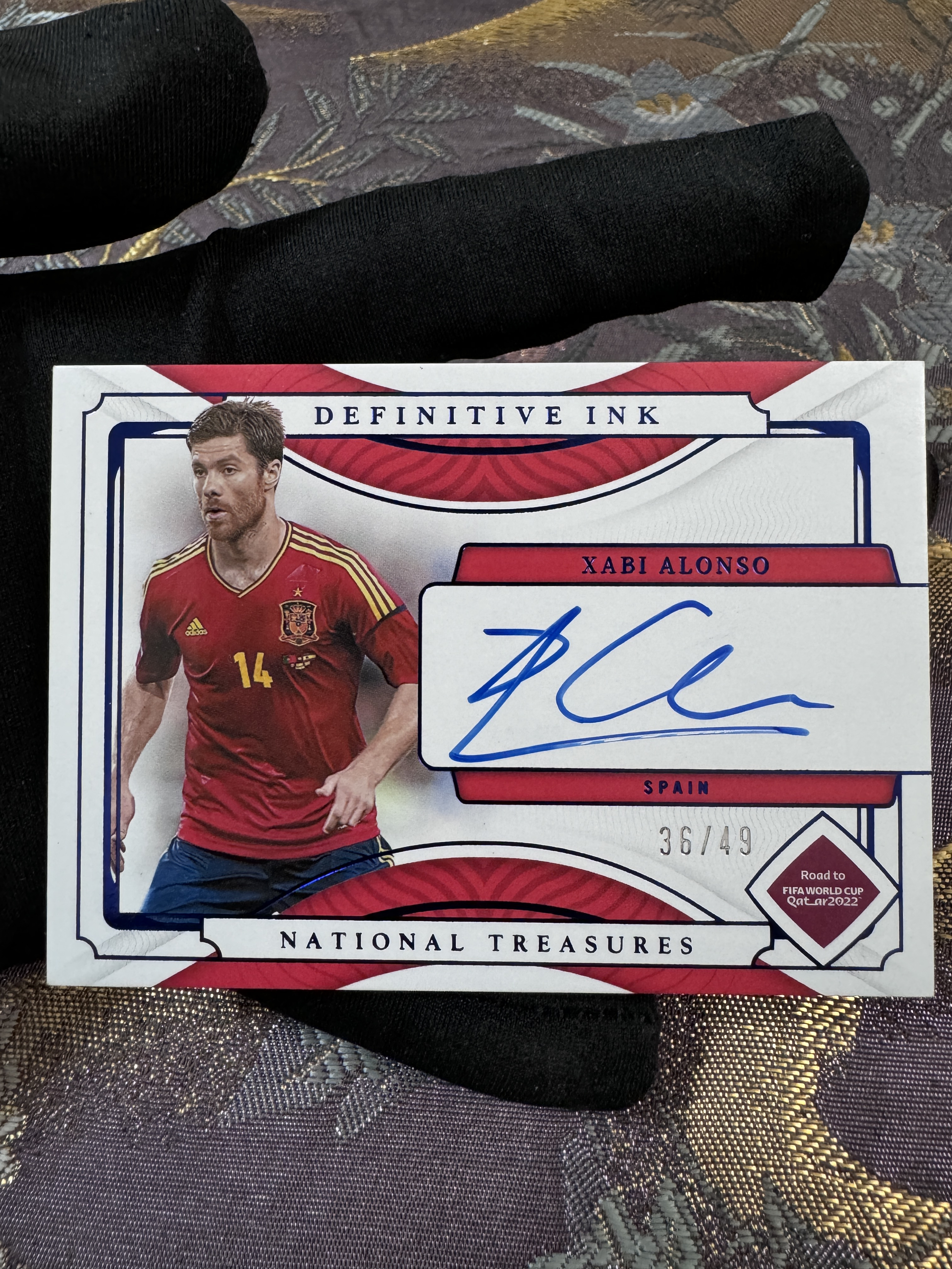 2022 Panini National Treasures Xabi Alonso 世界杯 国宝 西班牙 皇马 顶级中场 哈维 阿隆索 卡签 蓝平行 INK签 36/49编 签字 完美墨迹 卡品如图