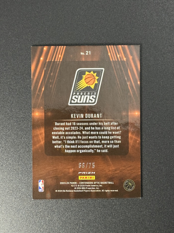 【卡品】卡品如图,参与竞拍前请仔细看清品相,如有疑问请在竞拍前进行咨询,所有卡片未进行特殊说明均为通行品,一旦售出不退不换。 Prizm Optic Select等等薄卡系列出厂自带的小划痕,国宝、IMM、Noir等系列厚卡的小白边小白角,镜面有划痕都属正常通行品相,品相要求高者请购买评级卡。如需确认卡品,只可在竞拍前联系确认,概不接受成交后提出异议推辞付款!