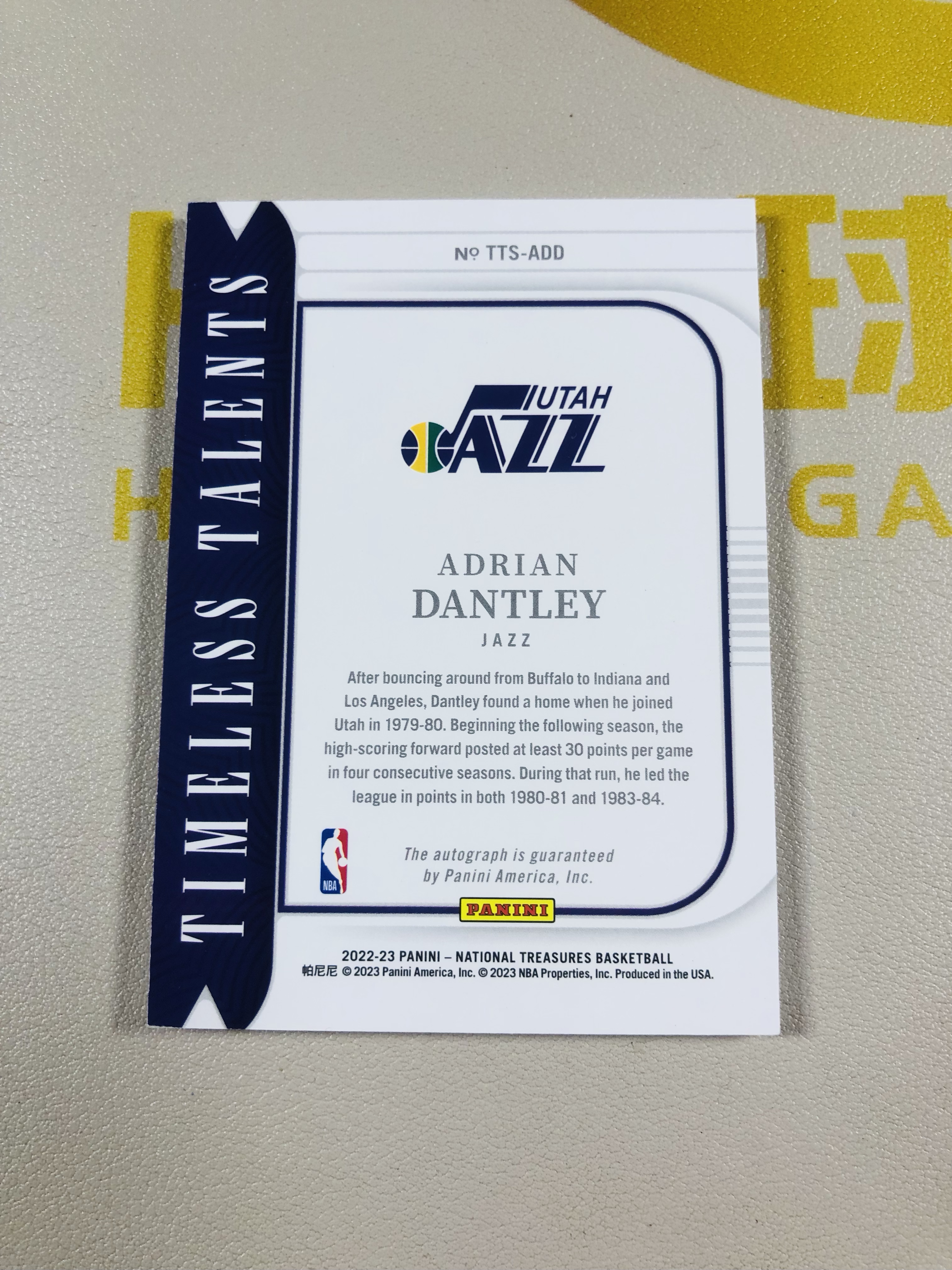 2022-23 Panini National Treasures Adrian Dantley 帕尼尼 NBA 国宝 爵士 丹特利 10/25编 签字卡签 单卡低于10元无卡夹介意勿拍 磁铁1124