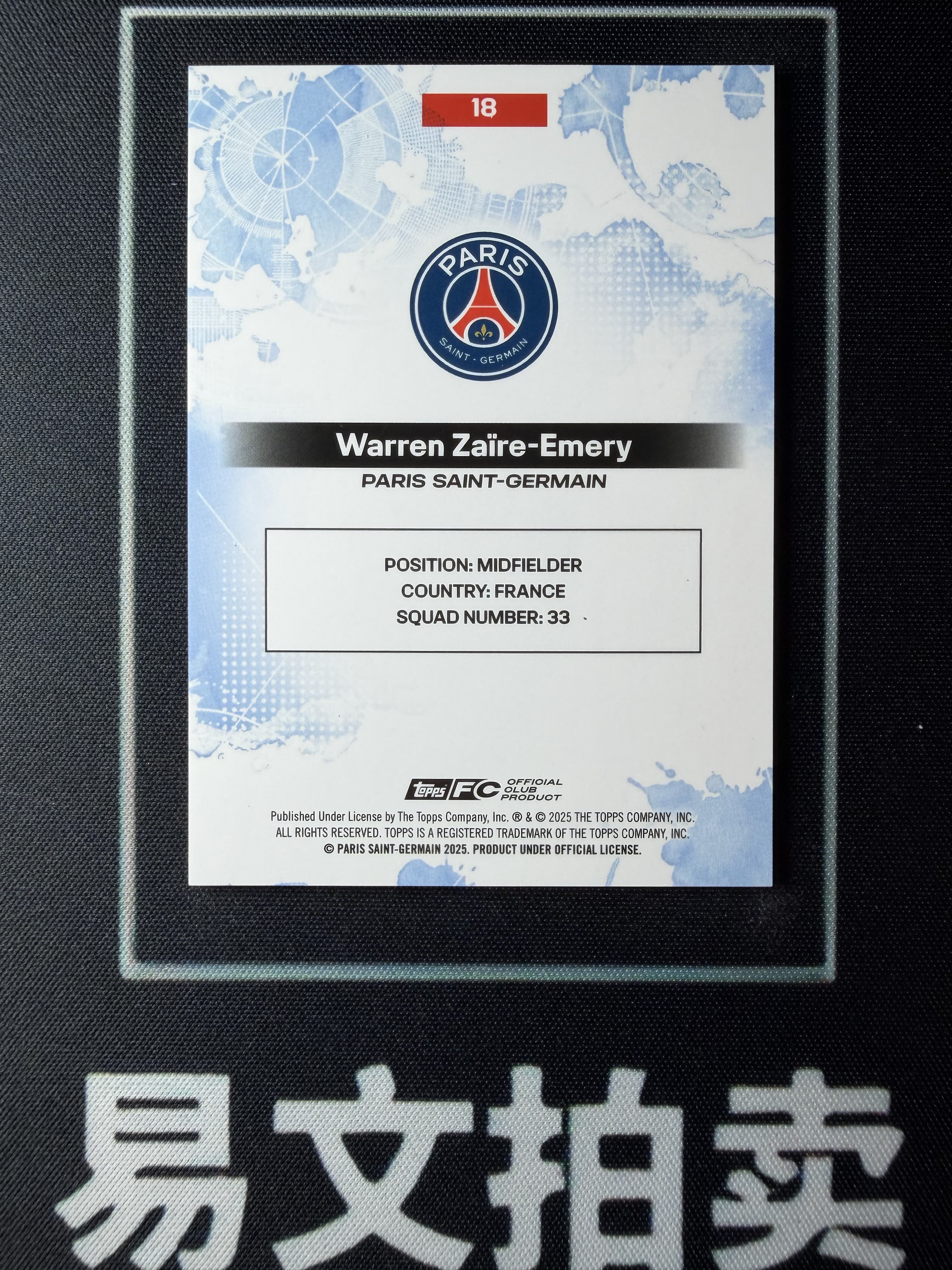 【易文拍卖 超级回款】2025 Topps Exhibition 巴黎展览高端队盒 WARREN ZAIRE EMERY 巴黎 扎伊尔 埃梅里 52/99编 蓝平行 #TuTu