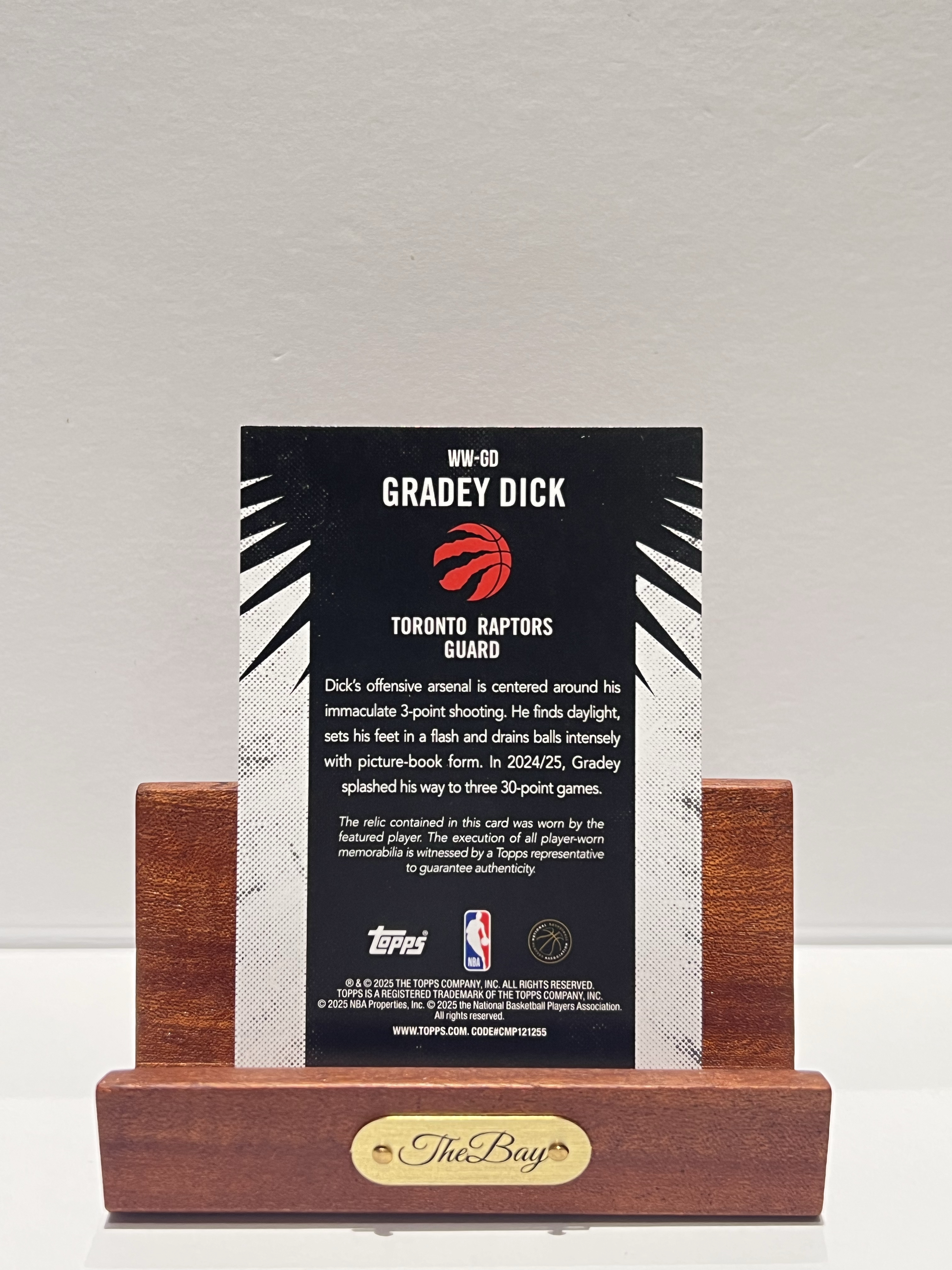 2025-26 Topps Flagship Gradey Dick 【湾区拍档代卖】格雷迪 迪克 小窗球衣物料 亲穿 Player Worn 猛龙 卡品如图 大白