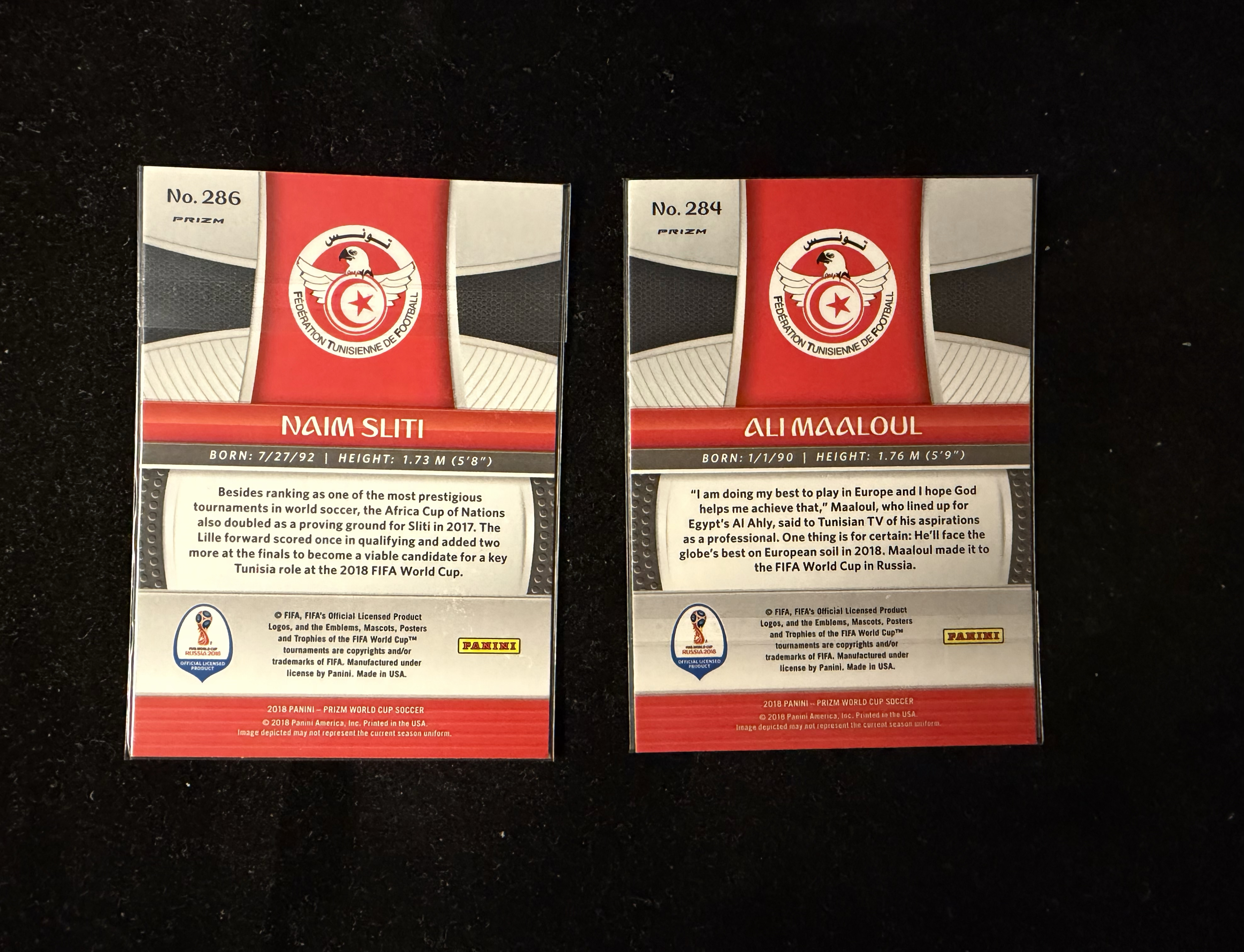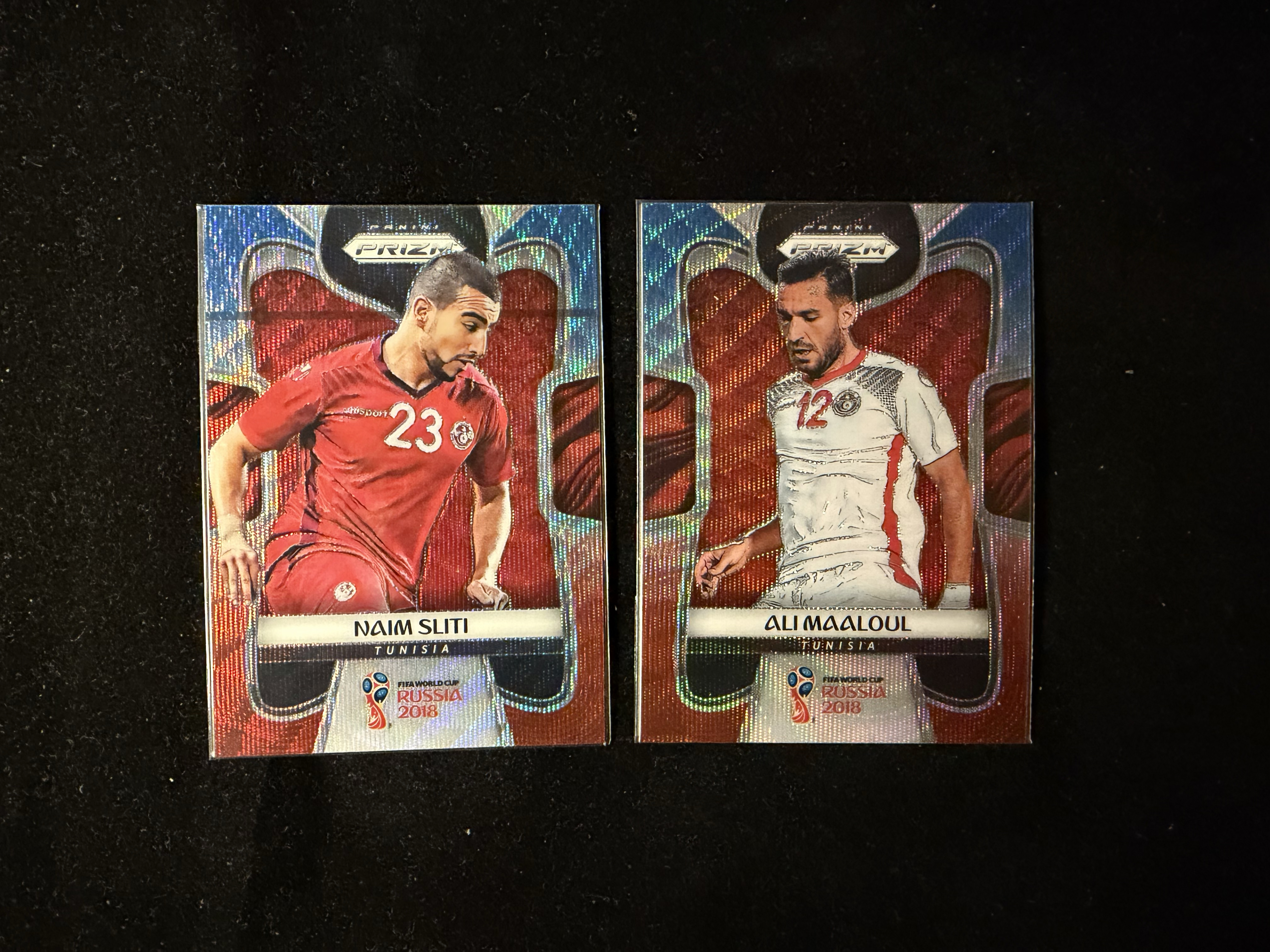 2018 Panini World Cup Prizm Ali Maaloul 世界杯 突尼斯 Tunisia 马鲁勒 Naim Sliti 蓝红折 卡品如图