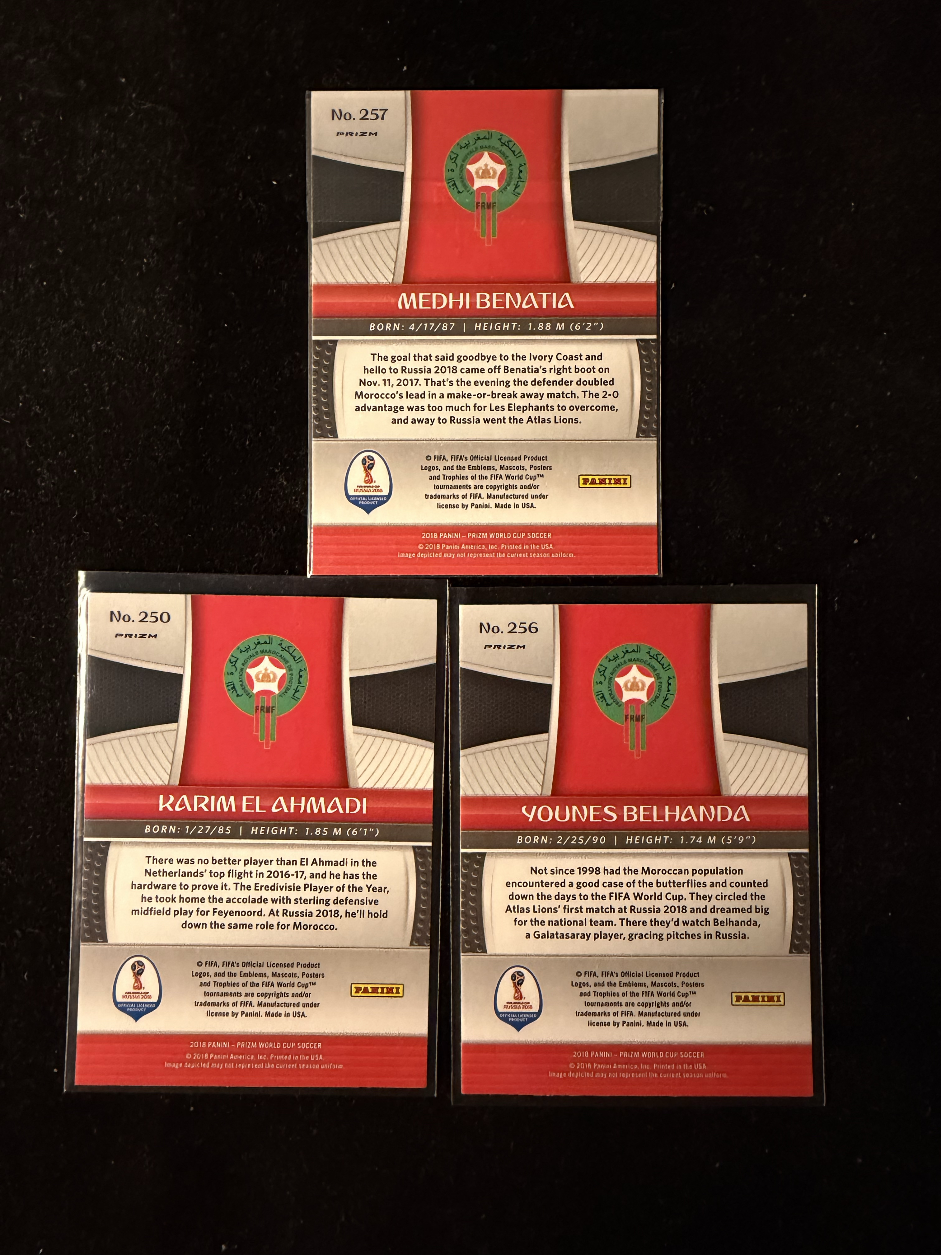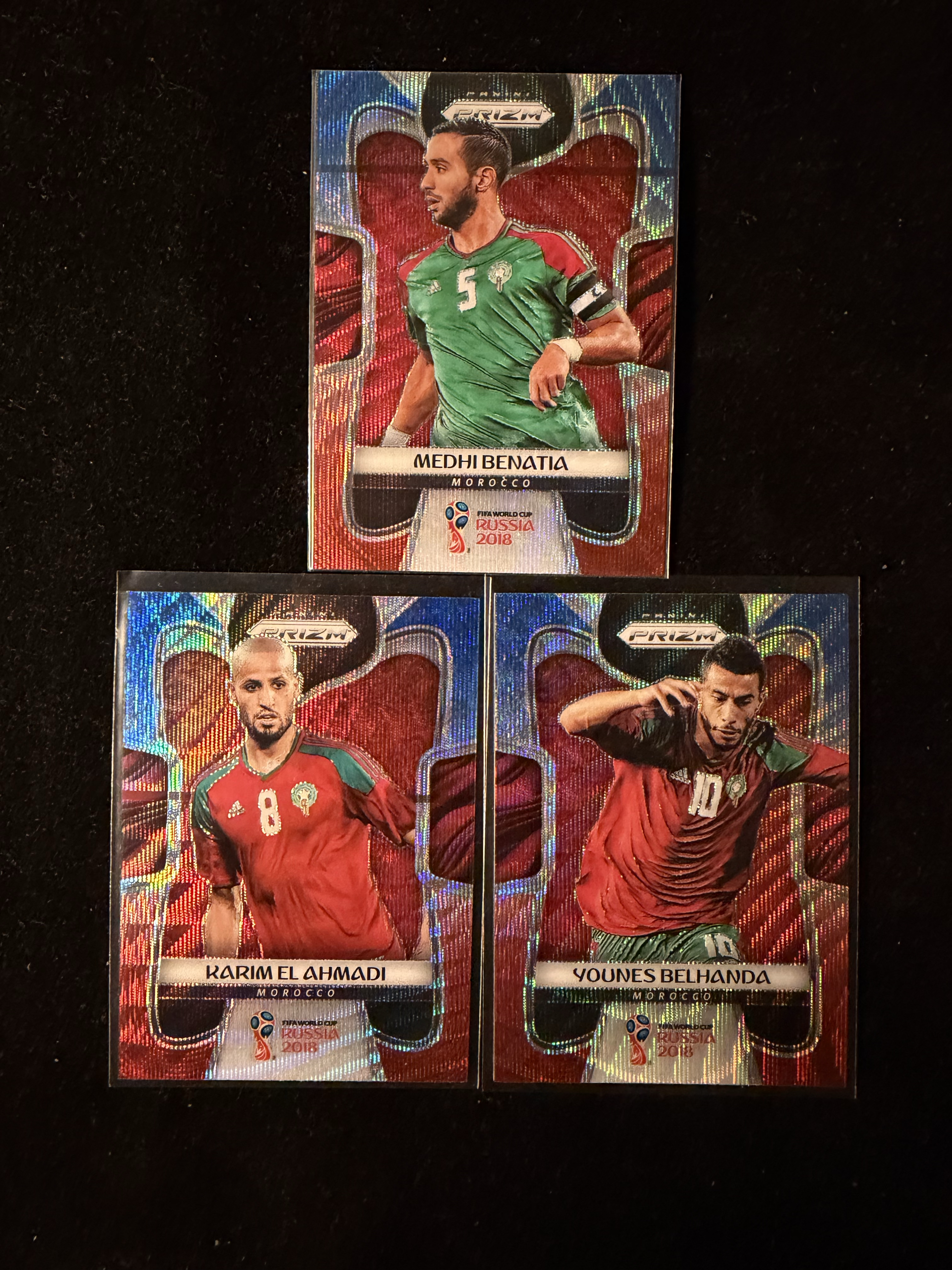 2018 Panini World Cup Prizm Medhi Benatia 世界杯 摩洛哥 Morocco 贝纳蒂亚 Younes Belhanda Karim Ahmadi 蓝红折 卡品如图