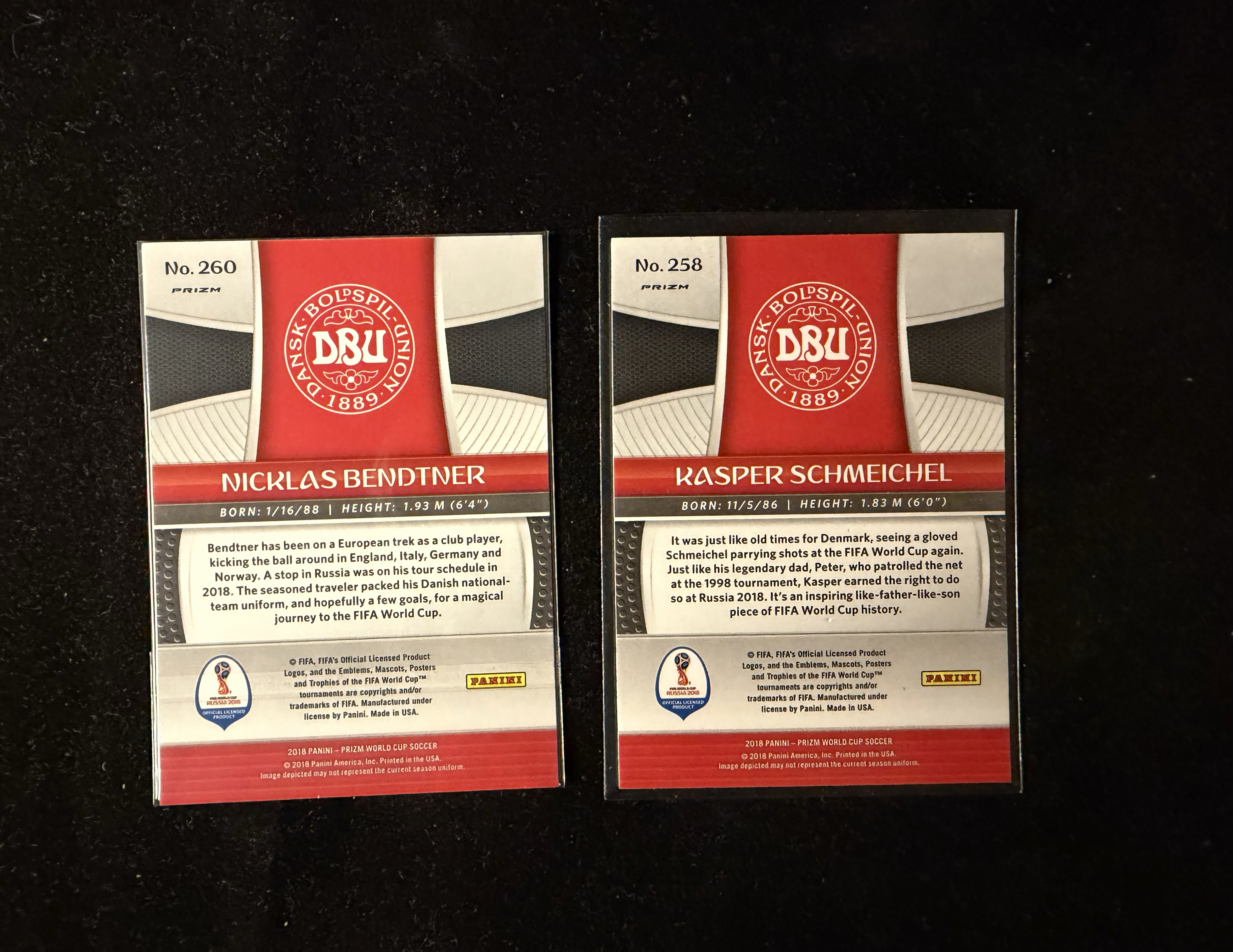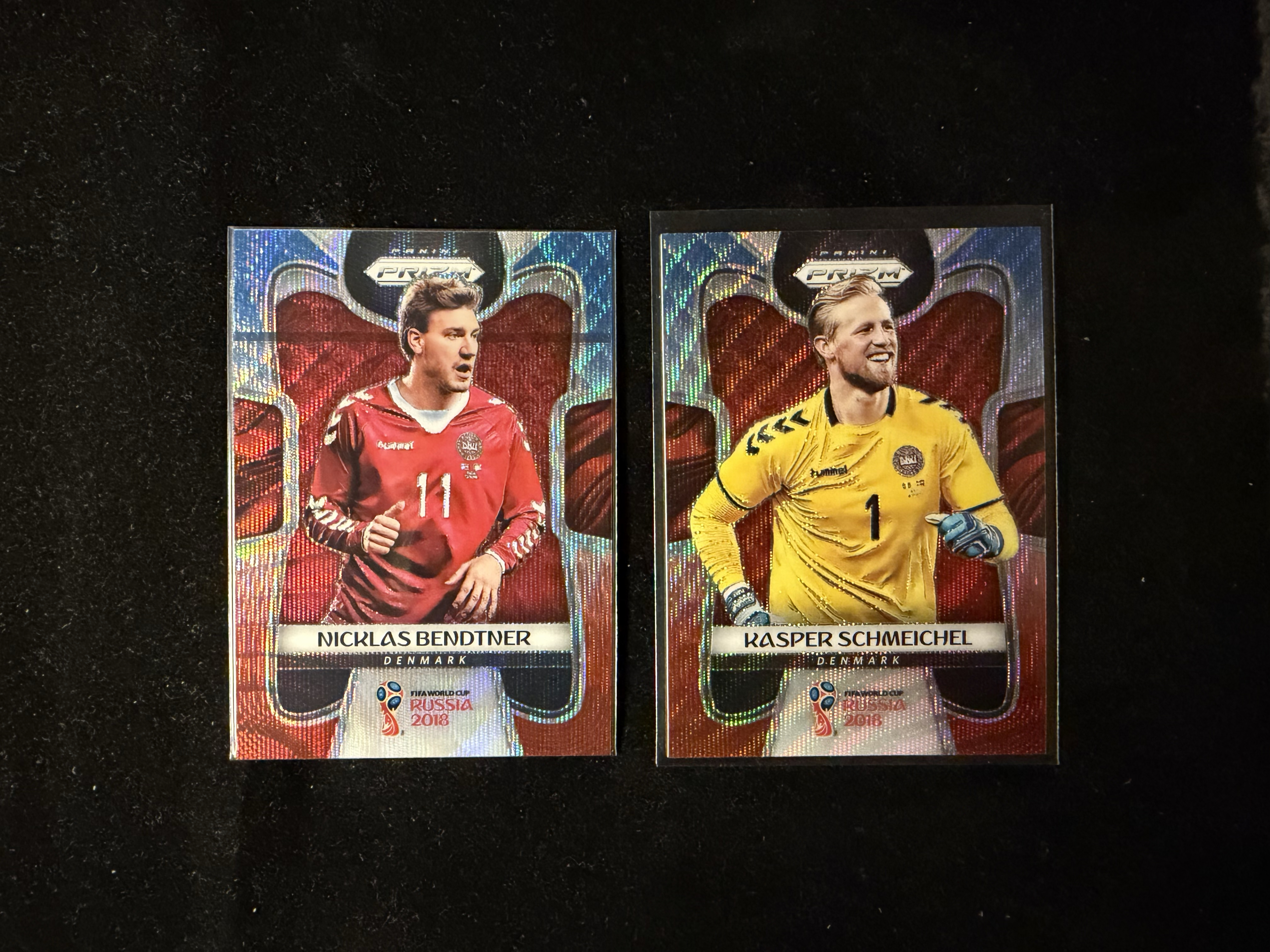 2018 Panini World Cup Prizm Kasper Schmeichel 世界杯 丹麦 Denmark 舒梅切尔 Nicklas Bendtner 本特纳 蓝红折 Arsenal