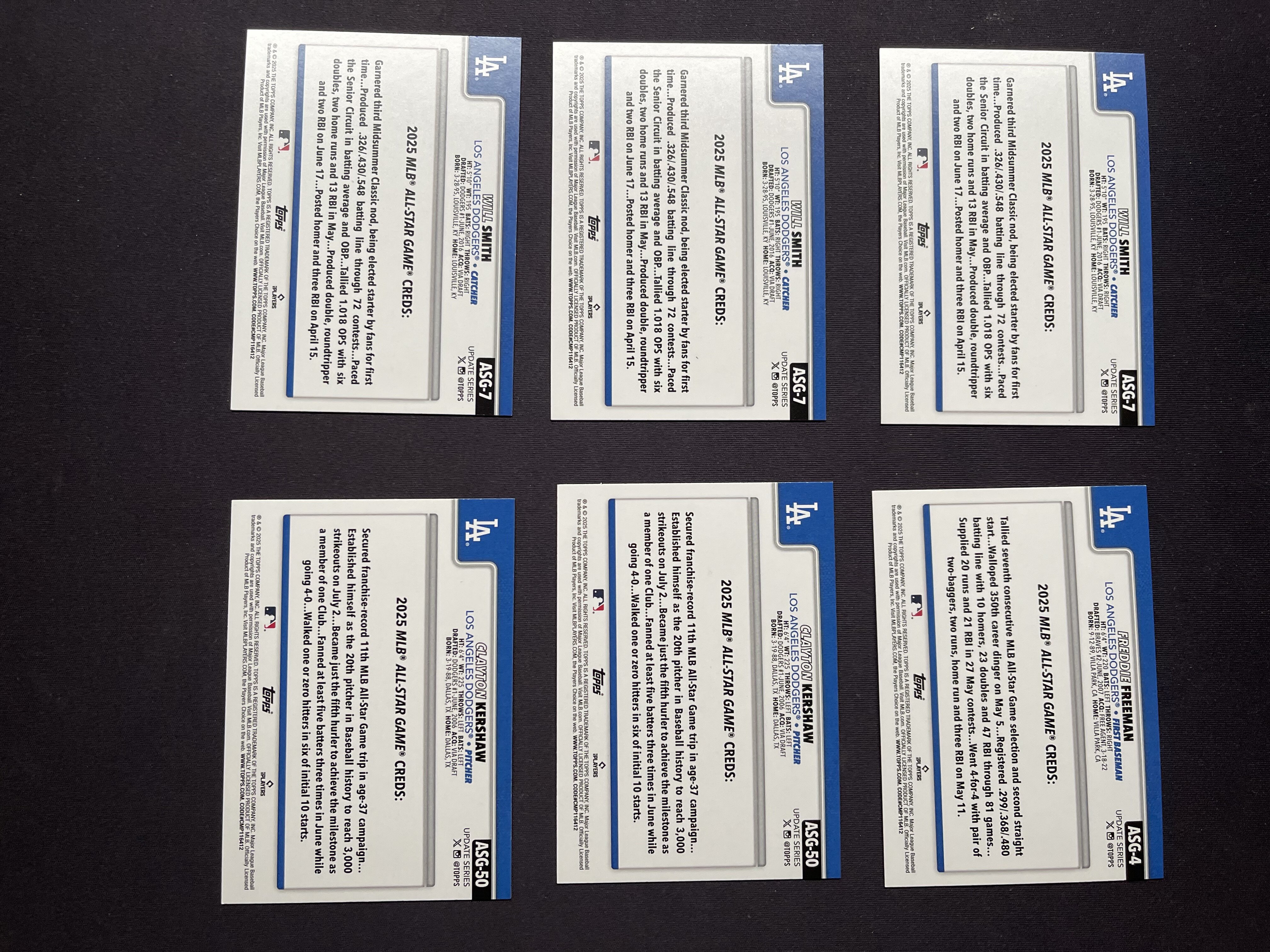 2025 Topps Update Series 棒球 洛杉矶道奇 威尔·史密斯 弗雷迪·弗里曼 克莱顿·克肖 All-Star Game 折射 银折 6张打包 品相不保证 不累计「老夫子」乐哥