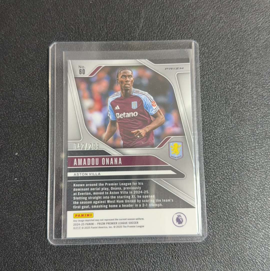 2025 Panini 英超 Amadou Onana 限量042/299编 阿斯顿维拉 阿马杜·奥纳纳 新拆盒子 拆盒及上膜上夹 肉眼未见明显瑕疵