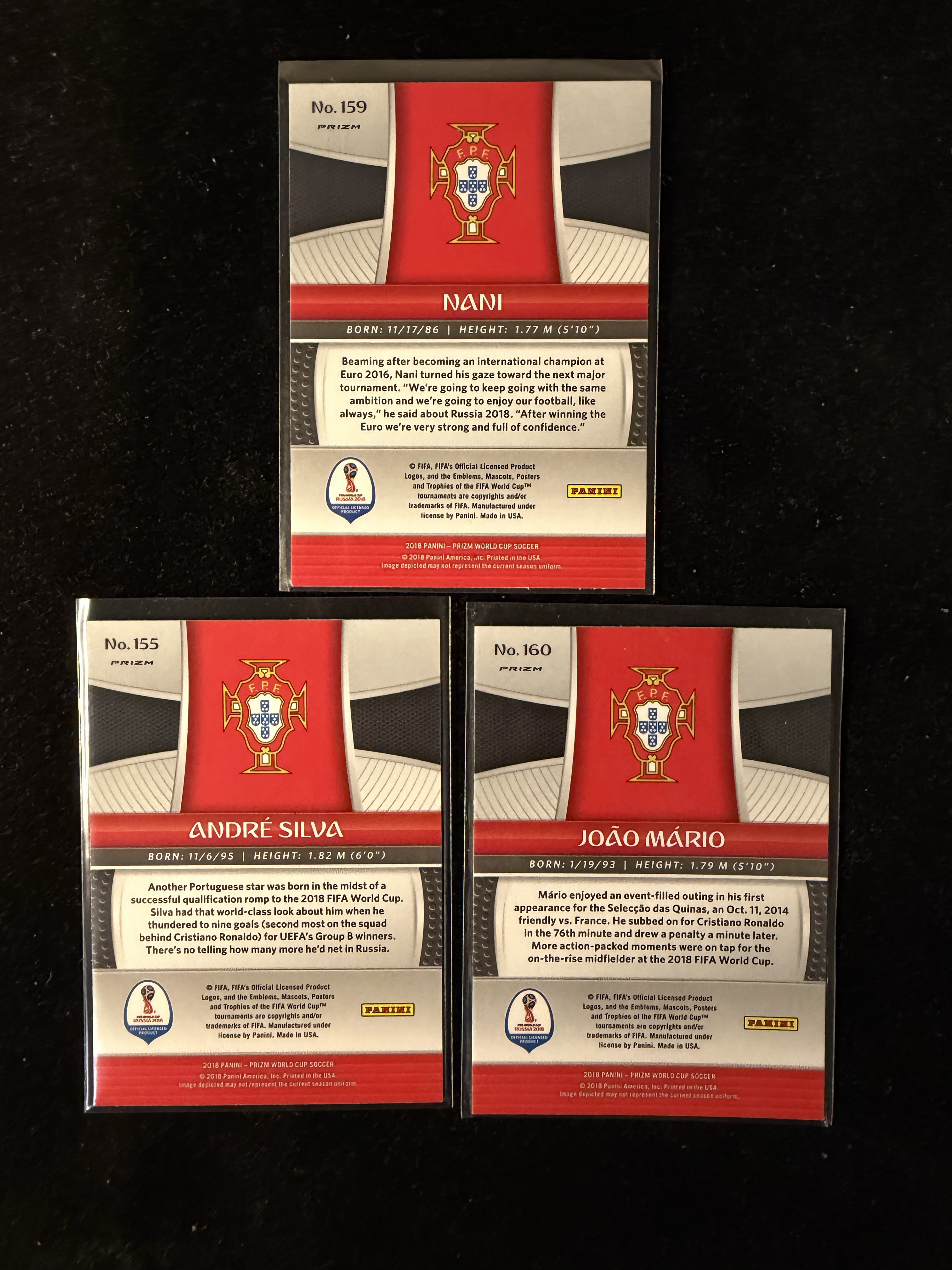 2018 Panini World Cup Prizm André Silva 世界杯 葡萄牙 Portugal 安德烈席尔瓦 Nani 纳尼 Joao Mario 马里奥 黑折 曼联 英超