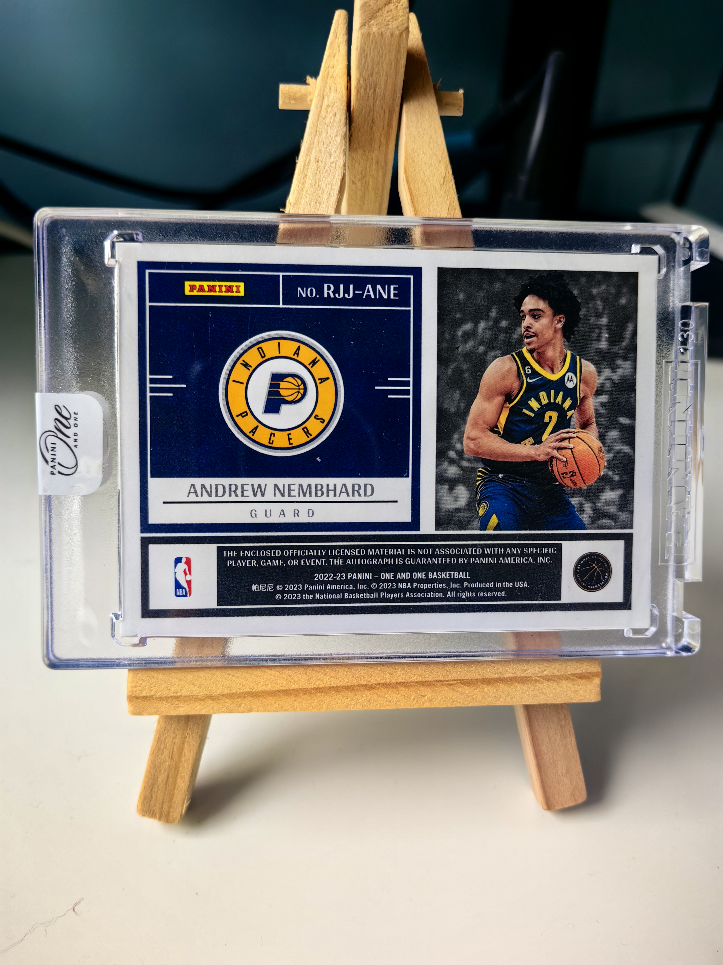 2022-23 Panini One and One Andrew Nembhard RC 步行者 安德鲁 内姆布哈德 新秀 OAO 35编 RPA 紫平行 签字 卡签 Patch 球衣 切割 原封砖
