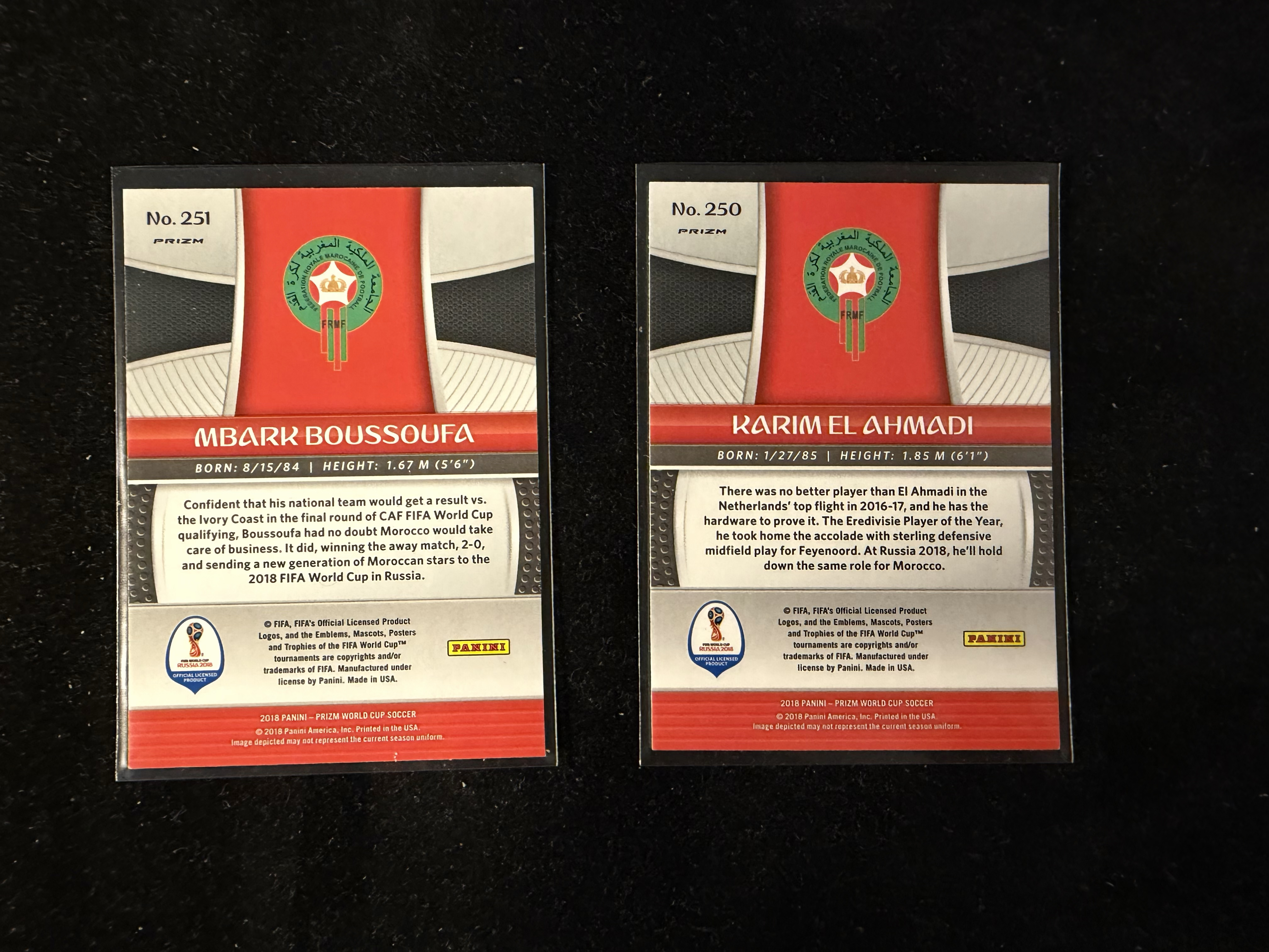 2018 Panini World Cup Prizm Karim El Ahmadi 世界杯 摩洛哥 Morocco 艾哈迈迪 Mbark Boussoufa 黑折