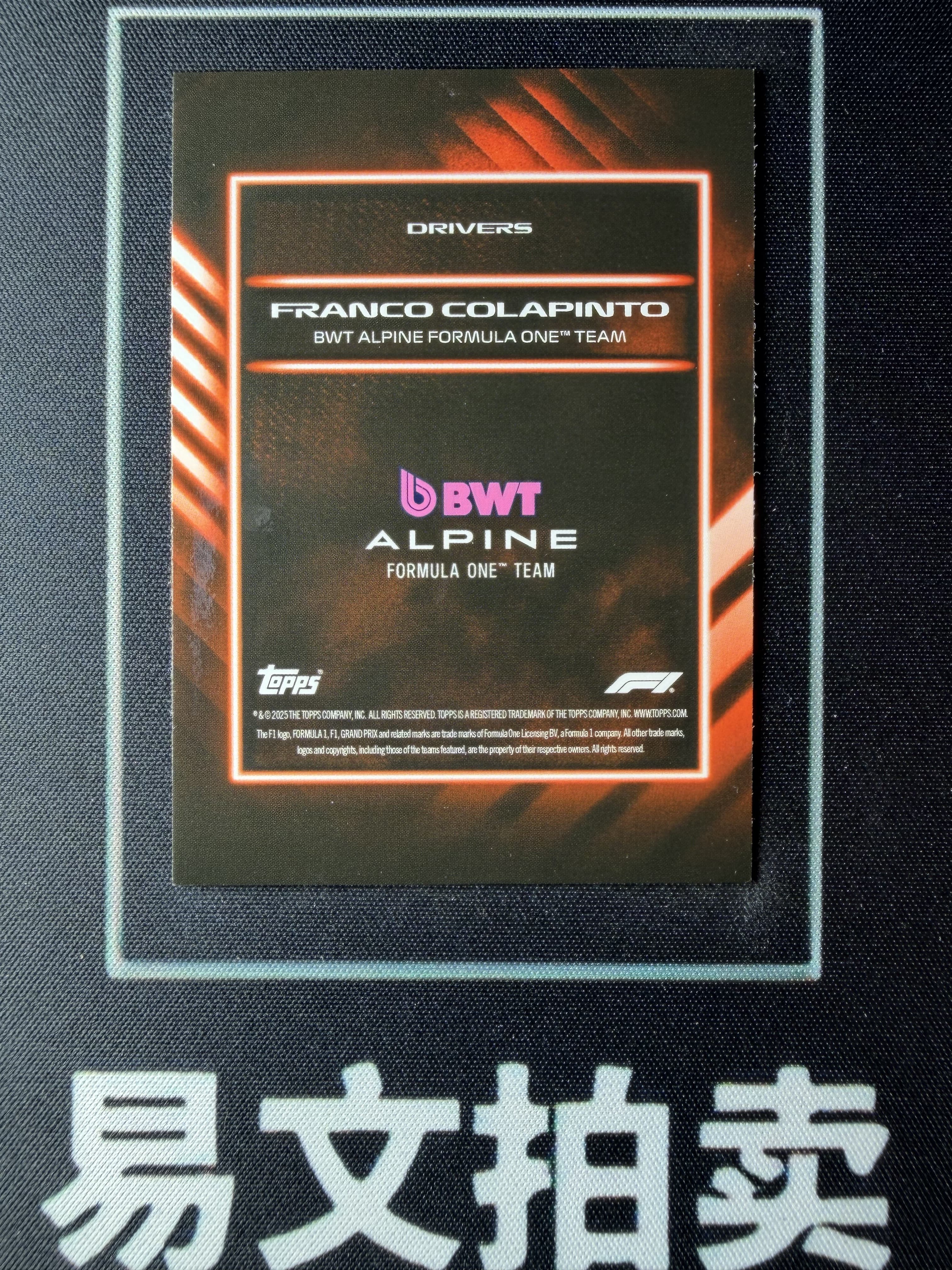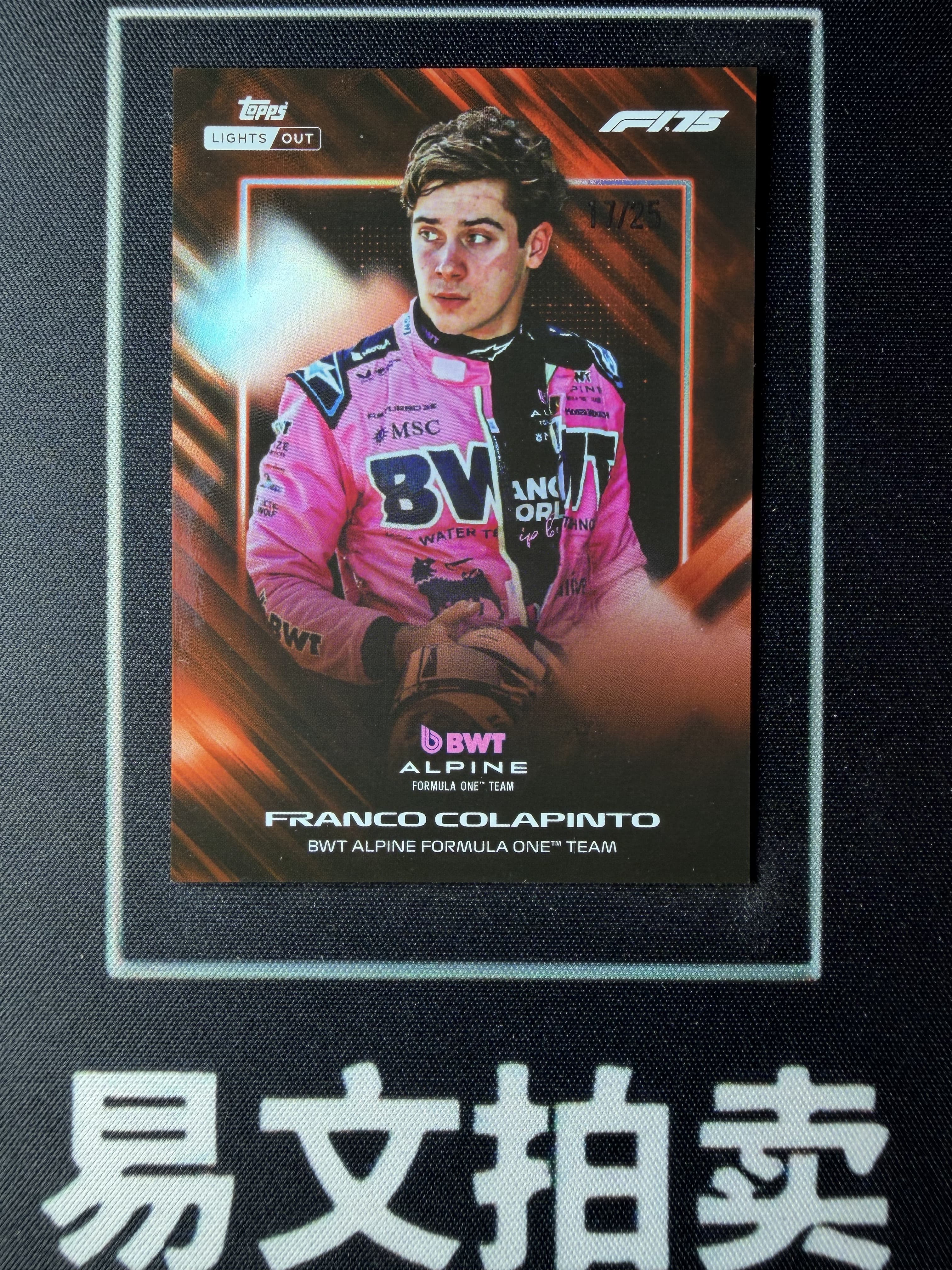 【易文拍卖 超级回款】2025 Topps Lights Out F1 方程式赛车 FRANCO COLAPINTO 弗朗科 科拉平托 17/25编 橙折 #TuTu