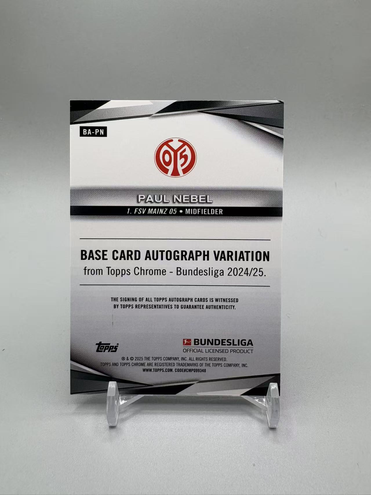2025 Topps Chrome Paul Nebel 【灰灰代拍】德甲chrome 保罗 内贝尔 10/10编 尾编 黑折 签字 美因茨 德国 兜