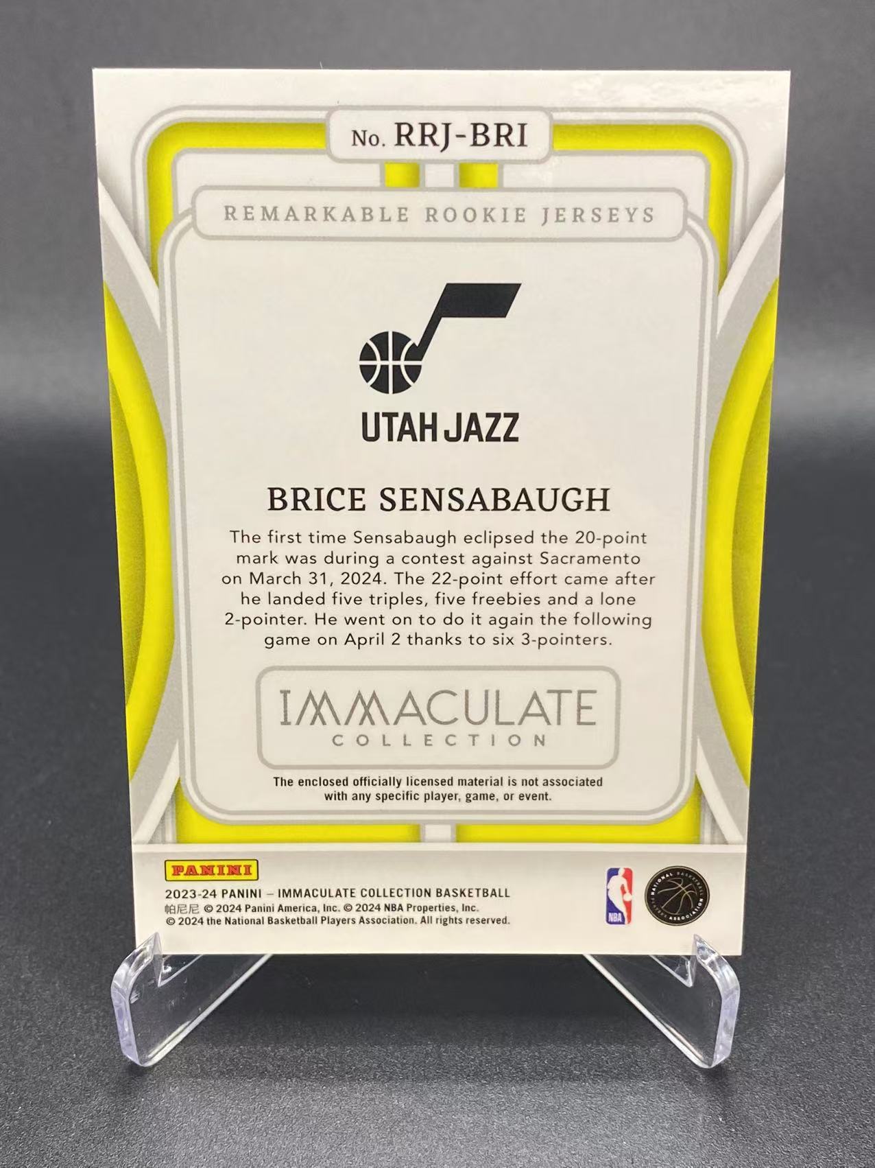 2023-24 【六六代卖 预付快速回款】 Immaculate Brice Sensabaugh RC 森萨博 爵士 99编 新秀 球衣实物 (糕01)2