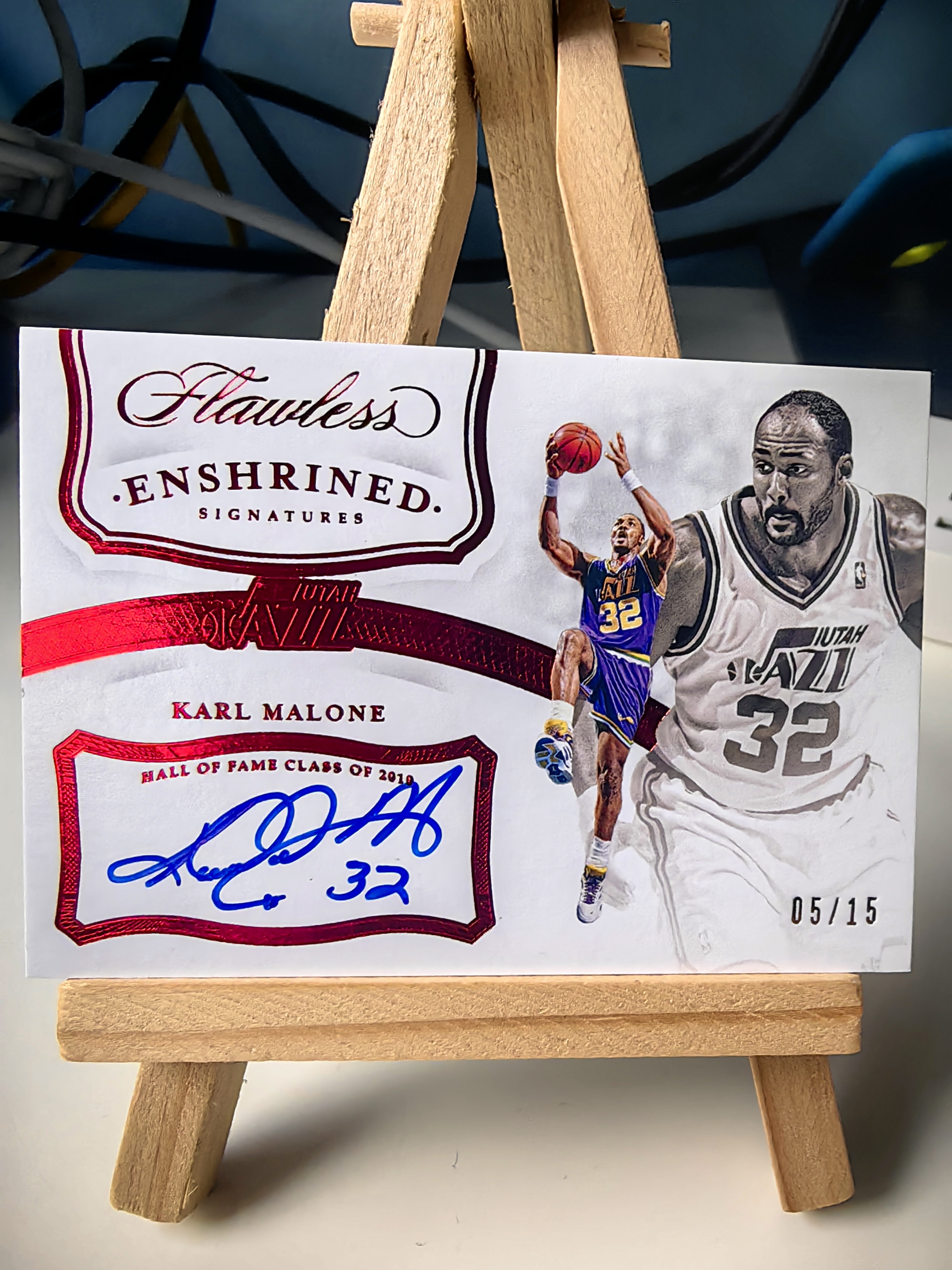 2019-20 Panini Flawless Karl Malone 犹他 爵士 名宿 邮差 卡尔 马龙 手提 超低编 15编 红平行 签字 卡签 Enshrined签 卡品完美 非常好看