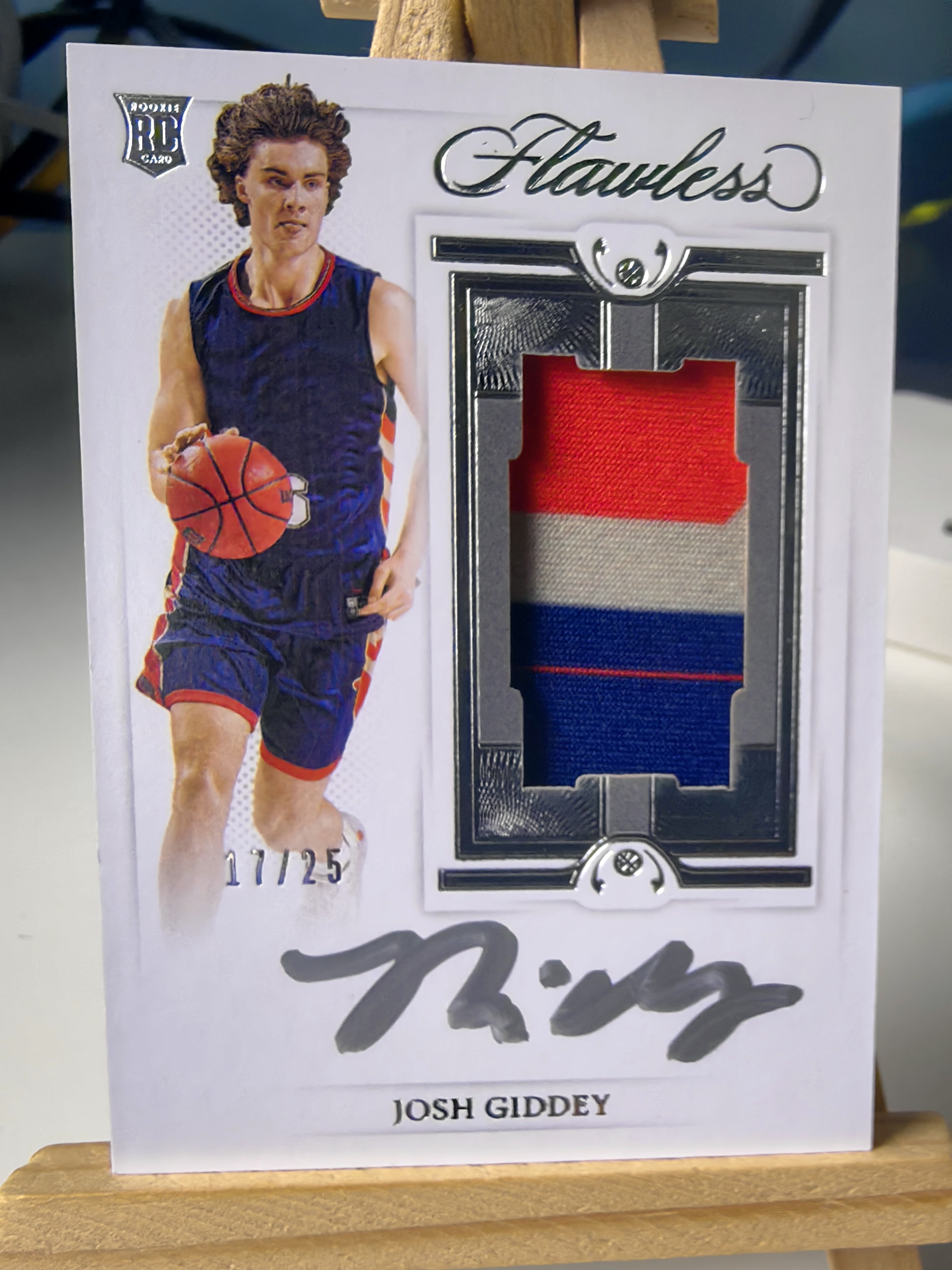 2021 Panini Flawless Collegiate Josh Giddey RC 雷霆 新秀 公牛 约什 吉迪 手提 大学 25编 RPA 签字卡签 银笔签 三色Patch暴力切割 卡背微瑕