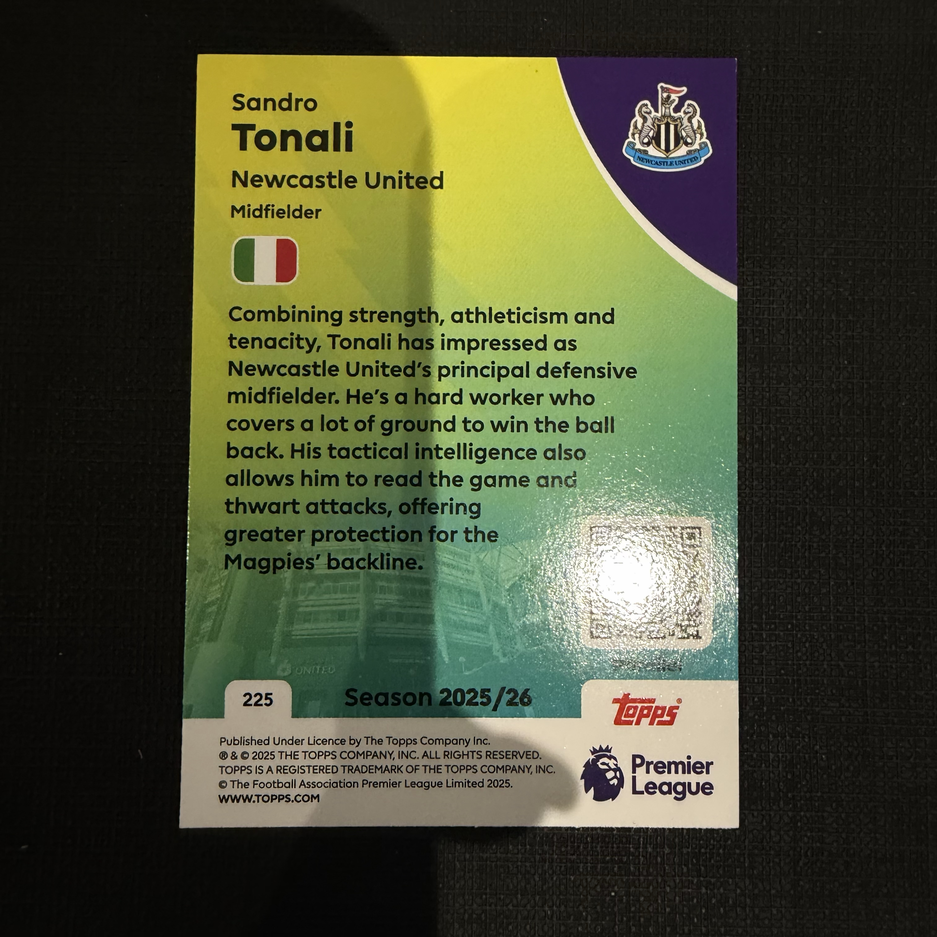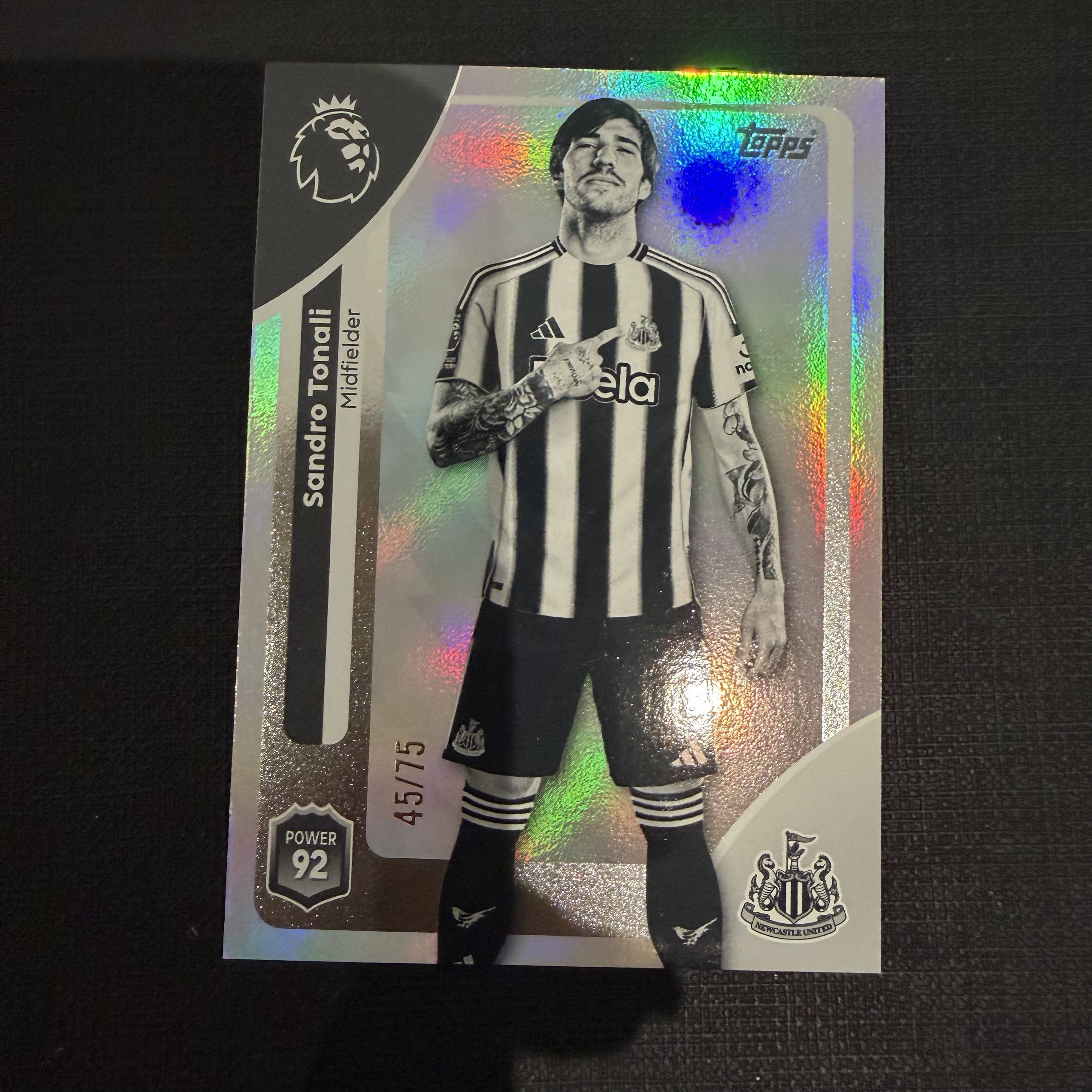 2025-26 Topps Premier Sandro Tonali 英超 托纳利 纽卡斯尔联 纽卡 折射 意大利 银折 /75编 【默认微瑕一日一快递 不累计 不发到付】卡aa