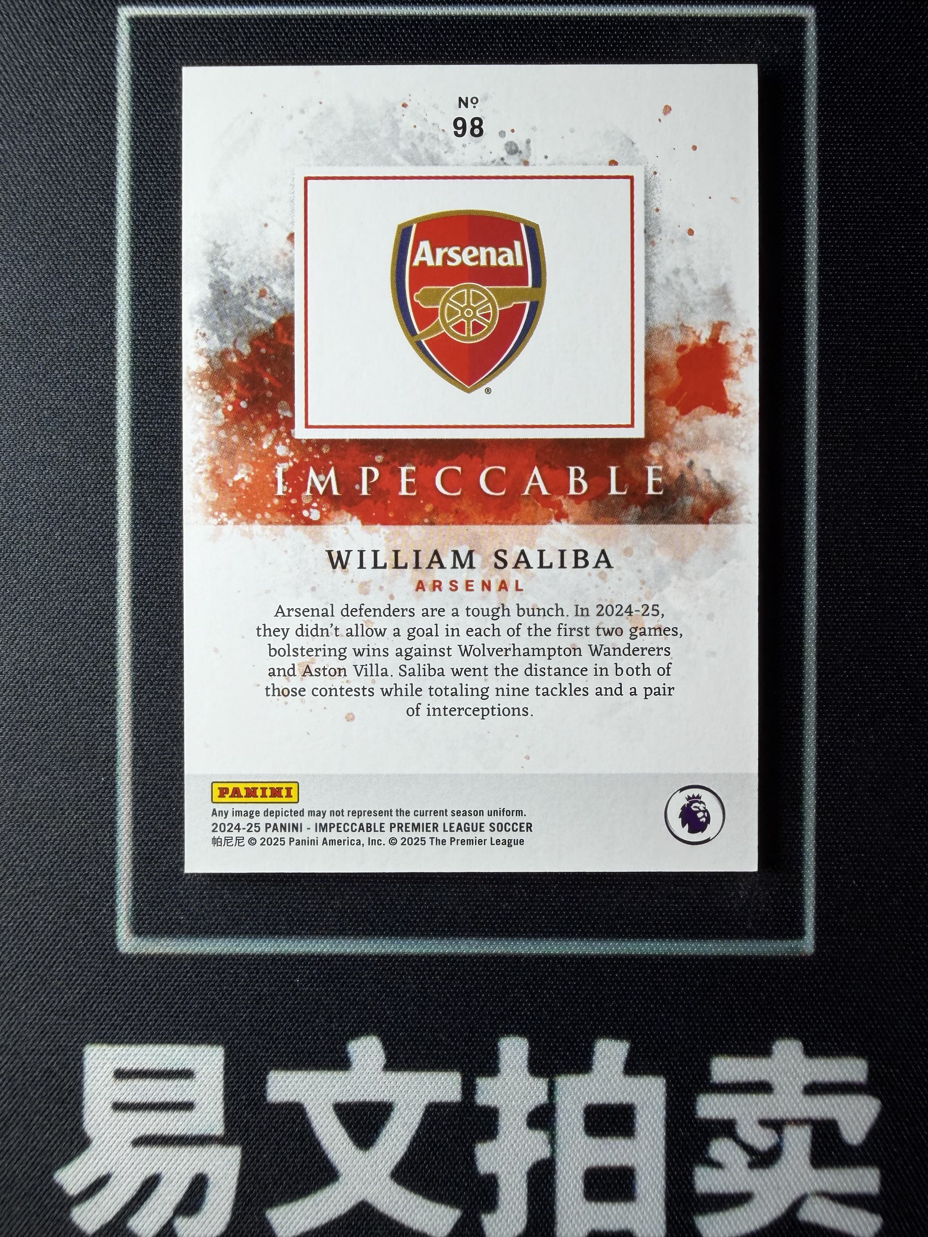 【易文拍卖 超级回款】2024-25 Panini Impeccable 小真金 WILLIAM SALIBA 阿森纳 萨利巴 法国 17/65编 #TuTu