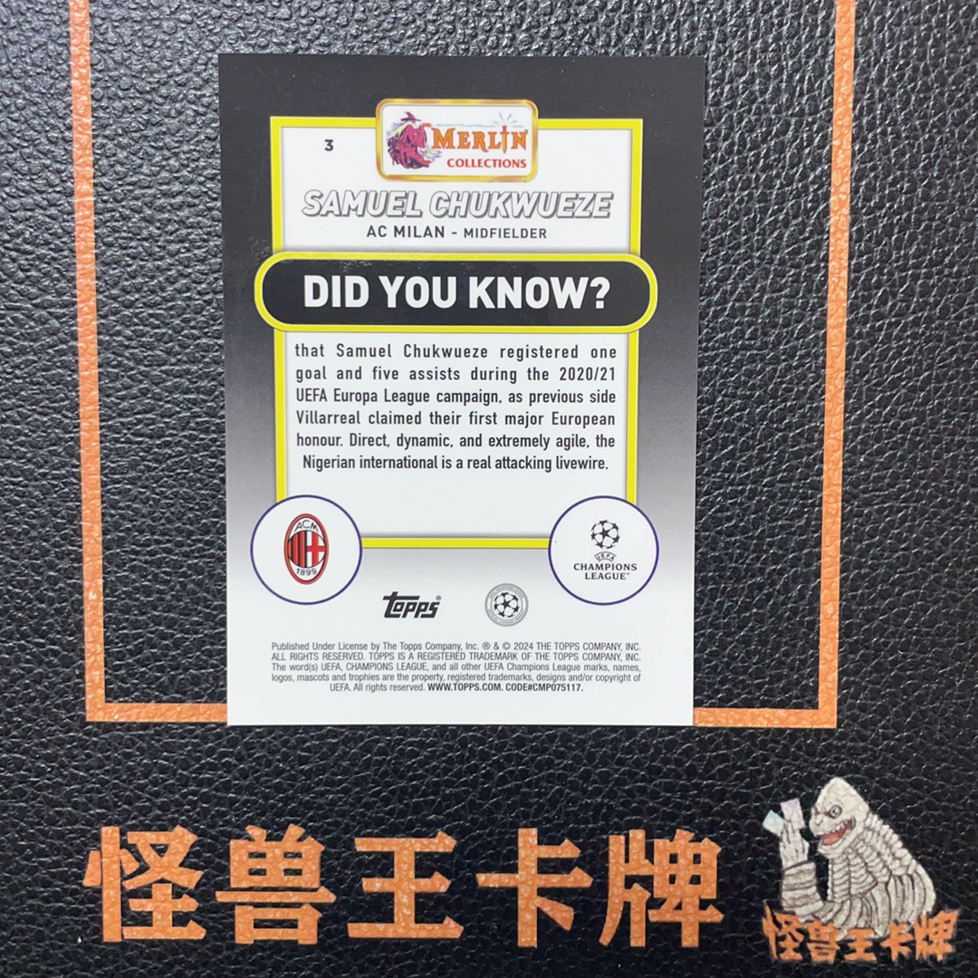(怪兽拍卖) GSW-B52 2024 Topps Merlin chrome Samuel Chukwueze 楚库乌泽 丘库乌泽 AC米兰 1/10编 首编 黑折 梅林 欧冠