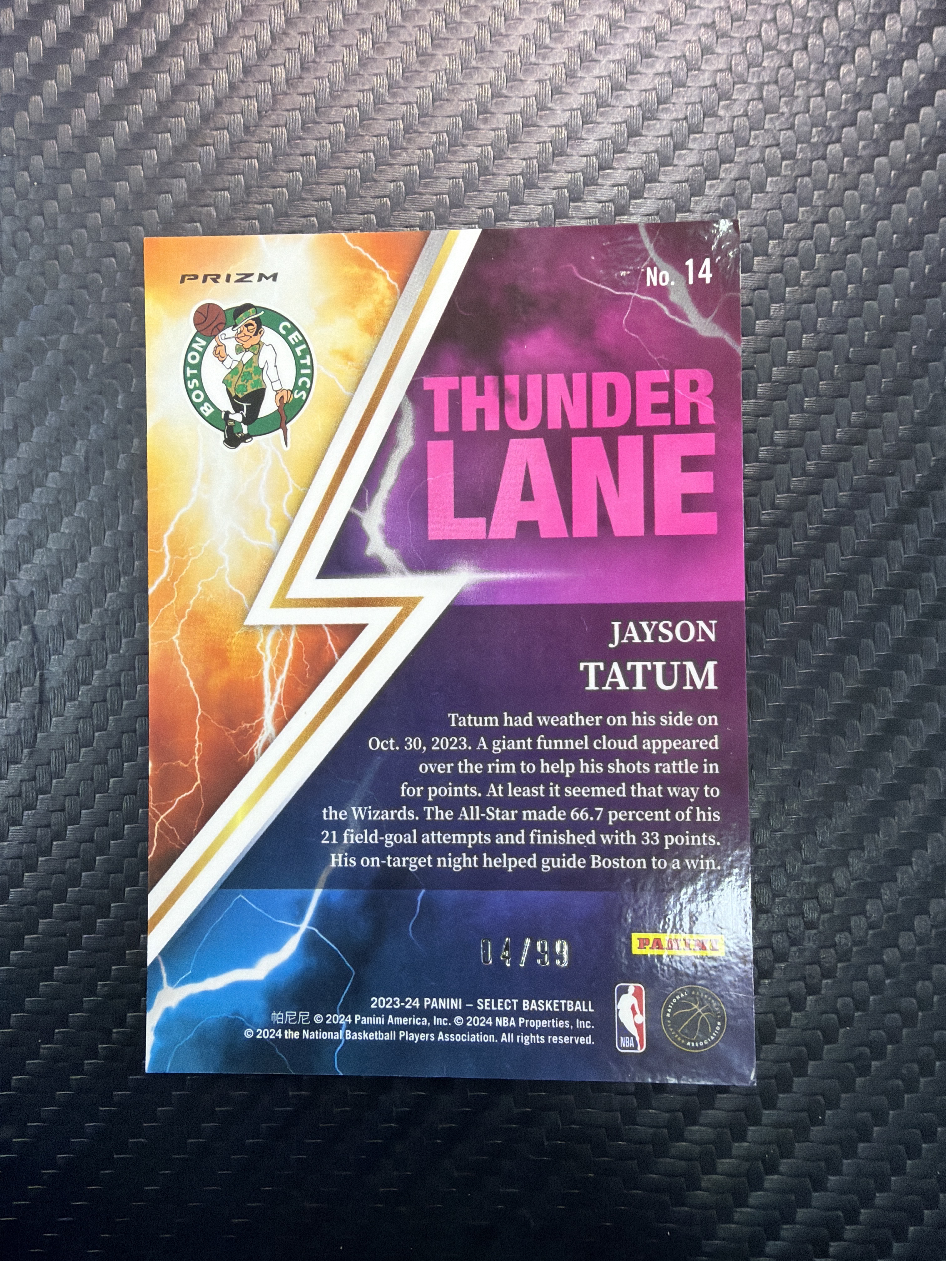 2023-24 Panini Select Jayson Tatum 塔图姆 99编 闪电特卡 flash折瀑布折 实卡炫酷好看 卡品如图