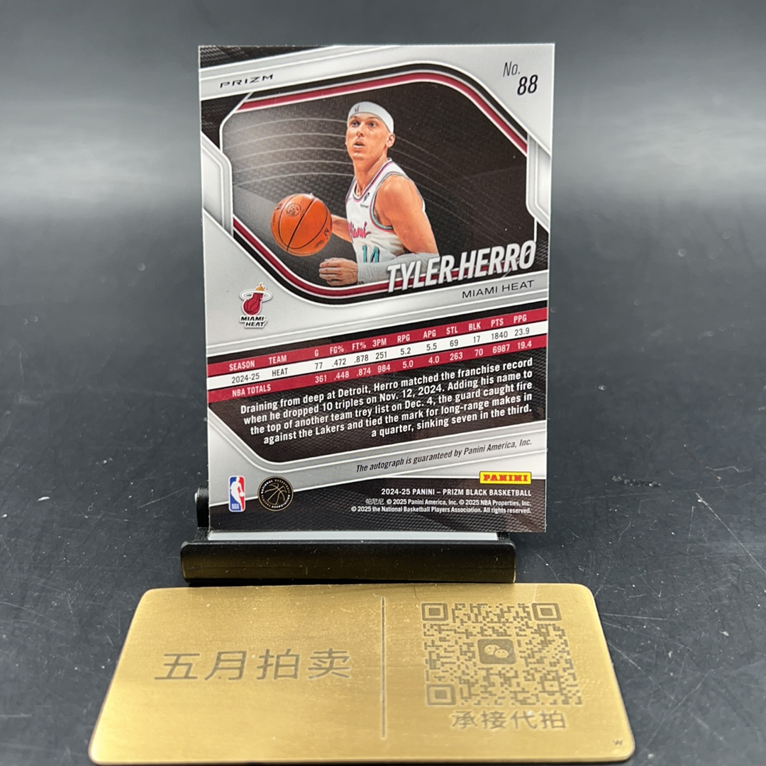 2024-25 Panini Prizm Tyler Herro 【五月拍卖顺丰空运】pz black 泰勒 希罗 签字 银折 折射 卡品如图 红顶帽u48