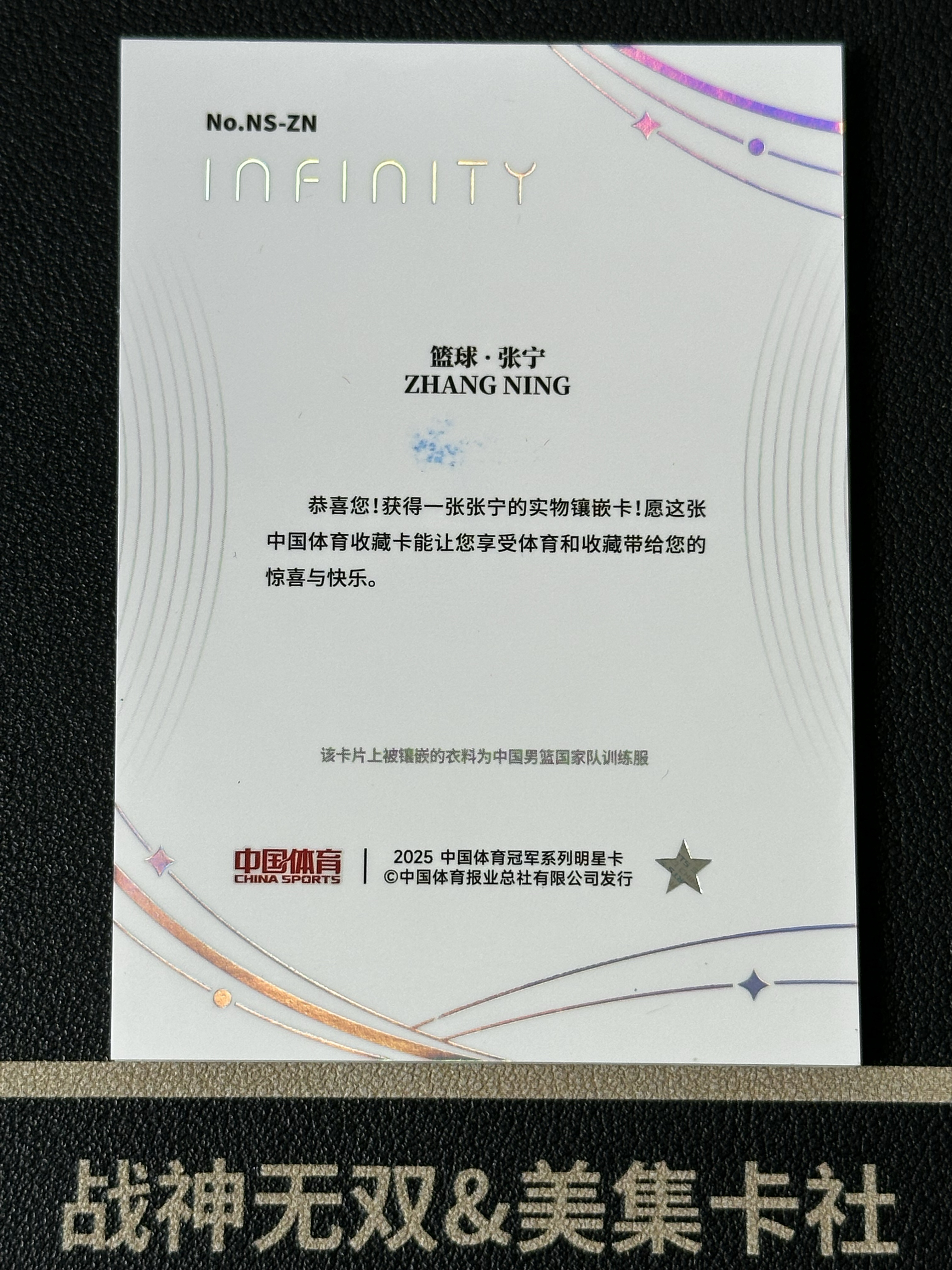 2025 奇卡 QICA 中国体育 无限 张宁 25编 大窗 球衣 物料 篮球 战神无双(黯淡)