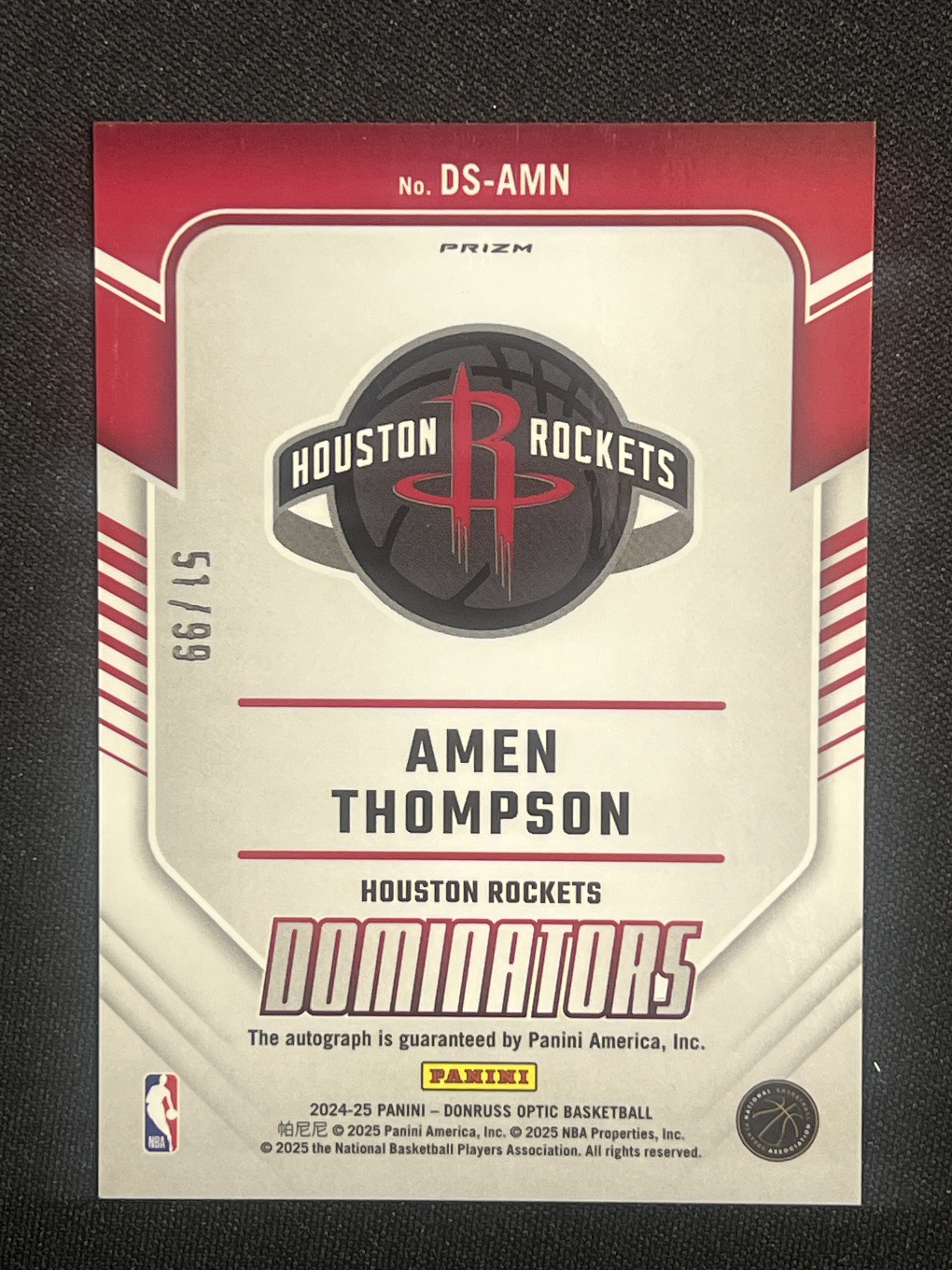 【卡卡星拍卖】2025 Panini Optic Amen Thompson 火箭队 阿门汤普森 杜蕾斯optic 99编 签字 折射 银折 卡品如图 user