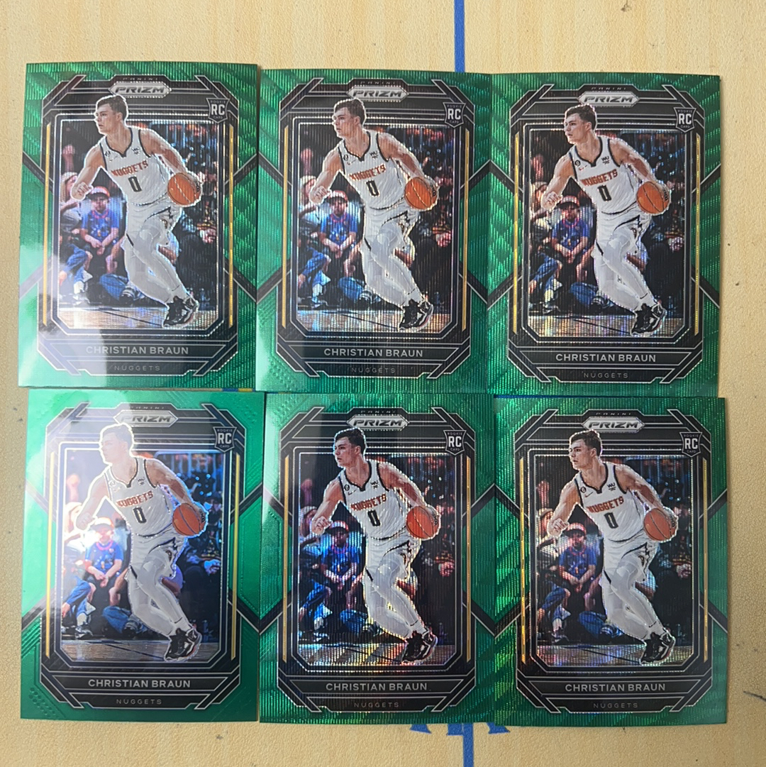 2022-23 Panini Prizm Christian Braun RC PZ 掘金 后场新星 克里斯蒂安 布劳恩 新秀年 绿波纹折射 6张打包 收藏必备 卡品如图