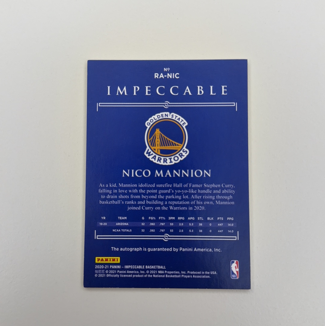 2020-21 Panini Impeccable Nico Mannion RC 尼克 曼尼恩 小真金系列 大系列 新秀年 34/88 编 卡签 勇士未来发展潜力 卡品如图