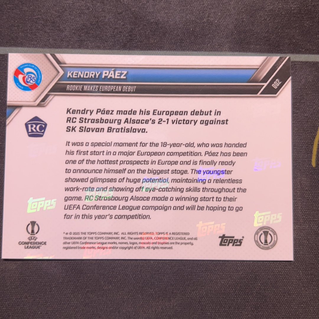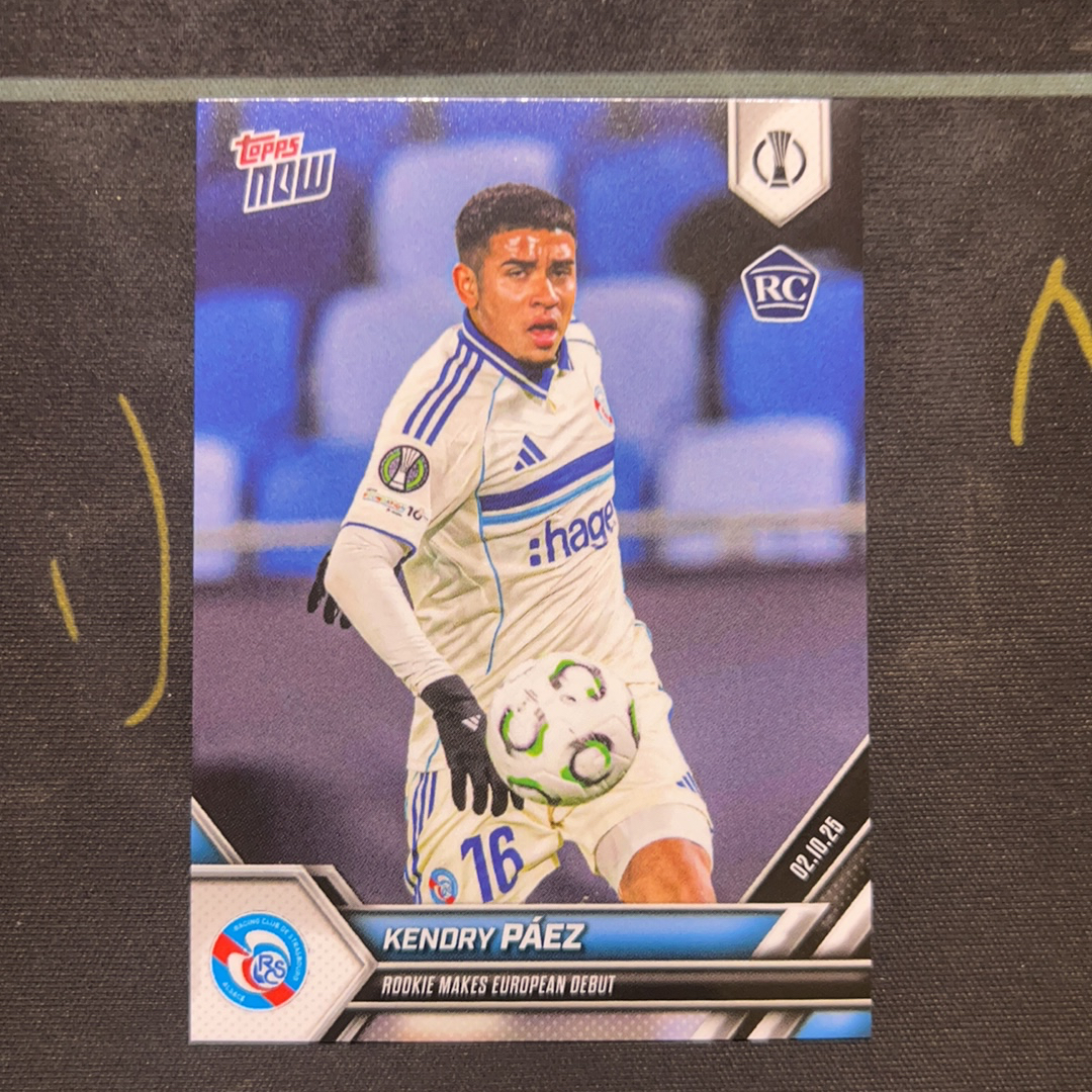 2024-25 Topps Now Kendry paez RC 派斯 斯特拉斯堡 法甲 法国 欧协联 欧联 欧战首秀 巴萨目标 实卡精美 收藏凑套必备 新秀 rc 屁屁卡卡 卡淘第一张