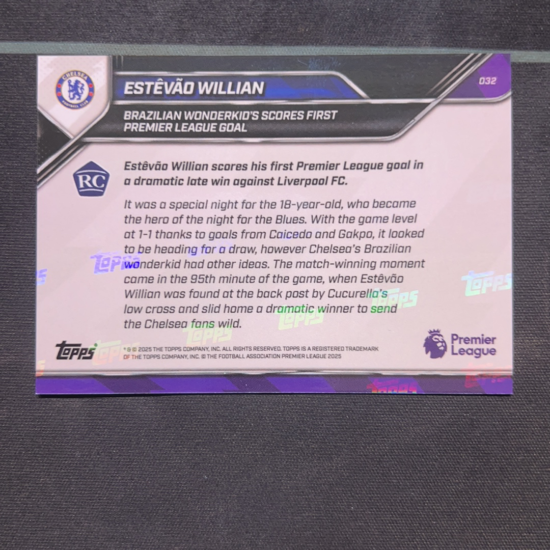 2025 Topps Now Estêvão Estevao RC 切尔西巴西天才埃斯特旺在英超联赛中首球,成为史上第三年轻的巴西球员。佩德罗 恩佐 德拉普 内托 凯塞多 帕尔默 乔治 吉滕斯