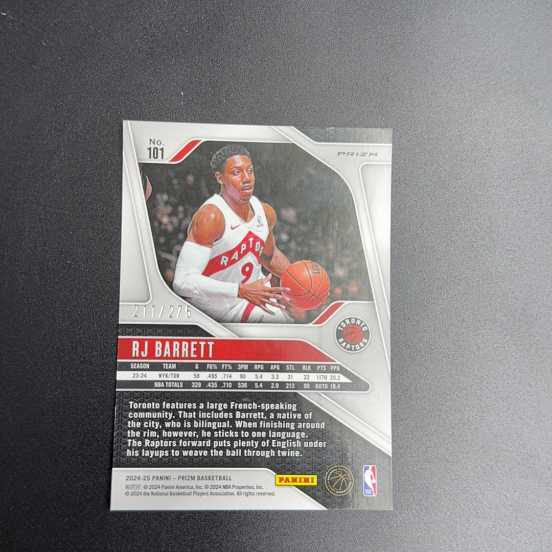 2024-25 Panini Prizm R.J. Barrett RC RJ 巴雷特 猛龙队 275编 白折 镭射 折射 卡品如图 -老鼠