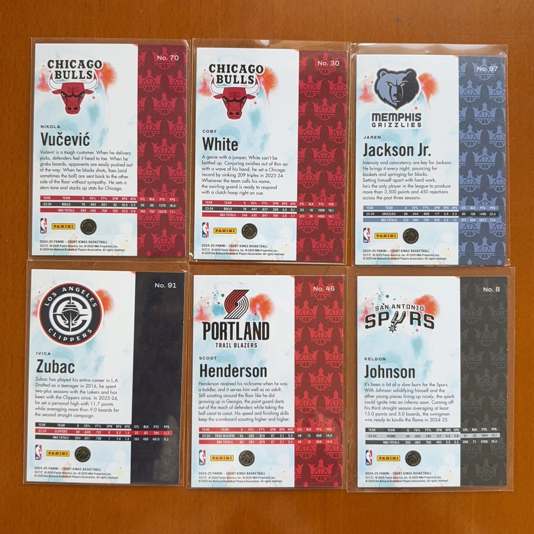 2024-25 Panini Court Kings Jalen Johnson 武切维奇 贾伦杰克逊 亨德森 科比 怀特 祖巴茨等联盟好人 油画 base 6张打包 瑕疵见图