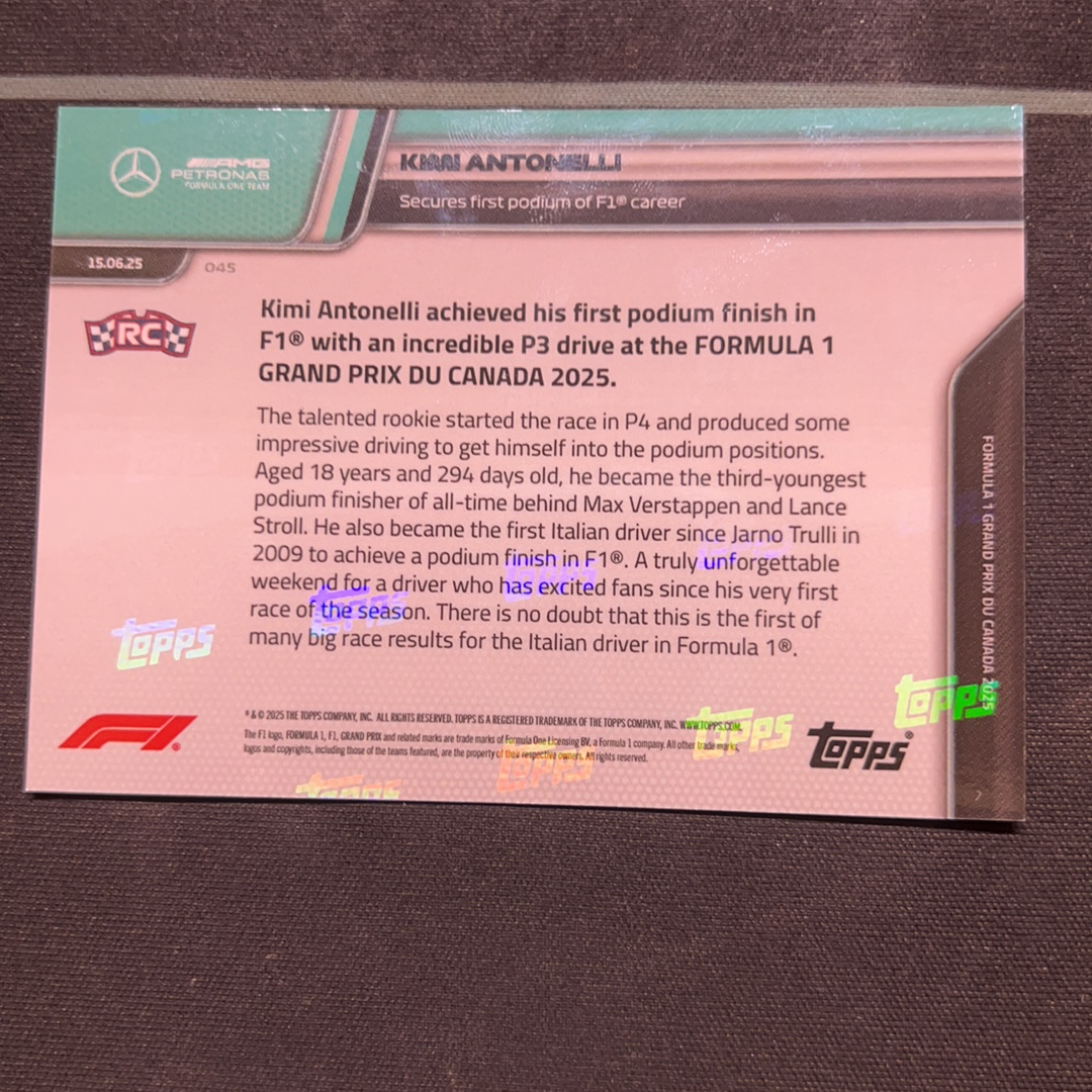 2025 Topps Now Kimi Antonelli 基米·安东内利 Topps now系列 F1 75周年 世界一级方程式锦标赛 F1记录 拿下生涯第一个冠军! RC新秀标 奔驰车队的首秀亮相