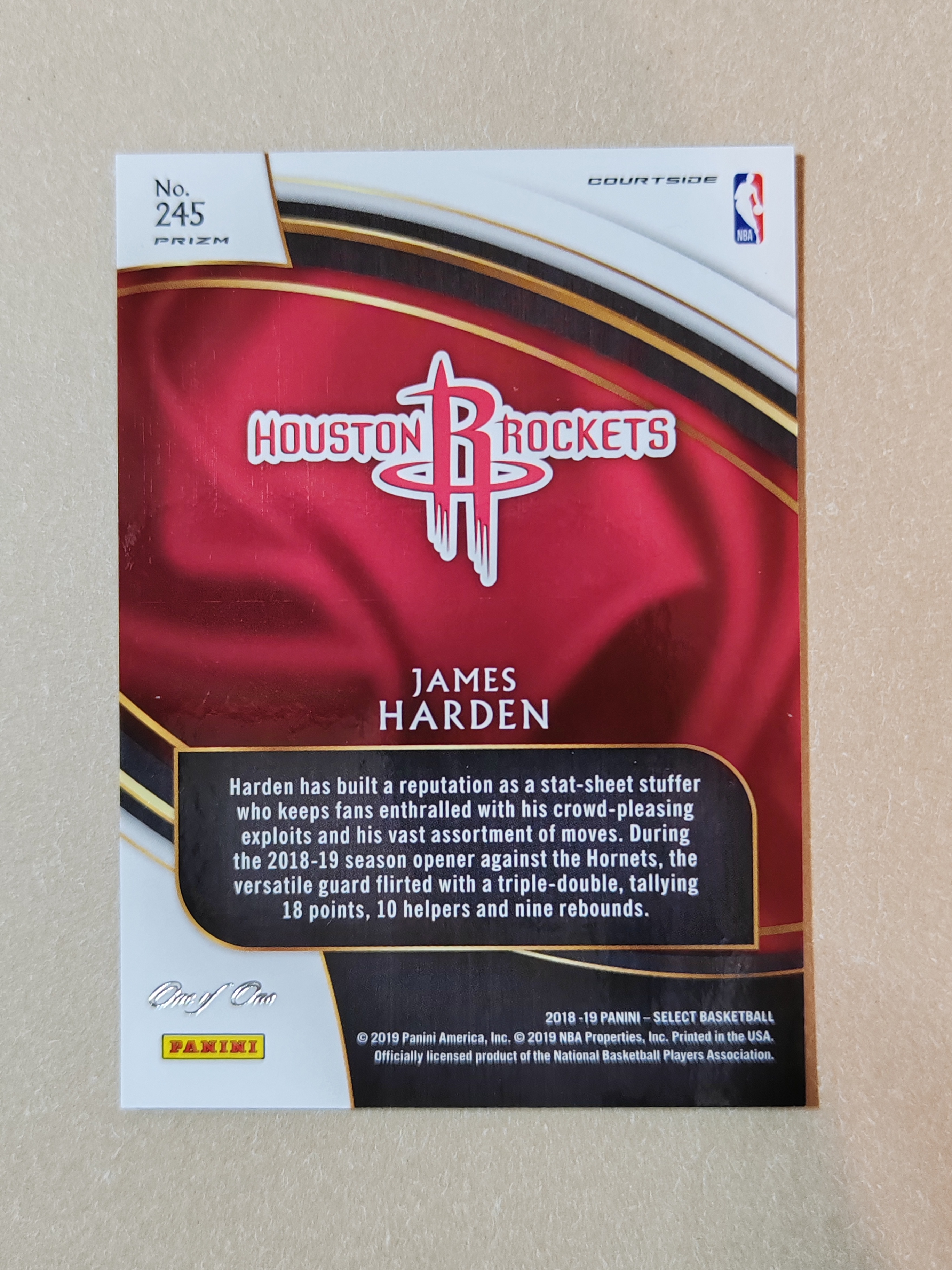 2018-19 Panini Select James Harden 詹姆斯 哈登 大比例 三级 正base 1/1 黑折 one of one 1of1 最好的折射系列 火箭选图 连续超神 孤胆英雄