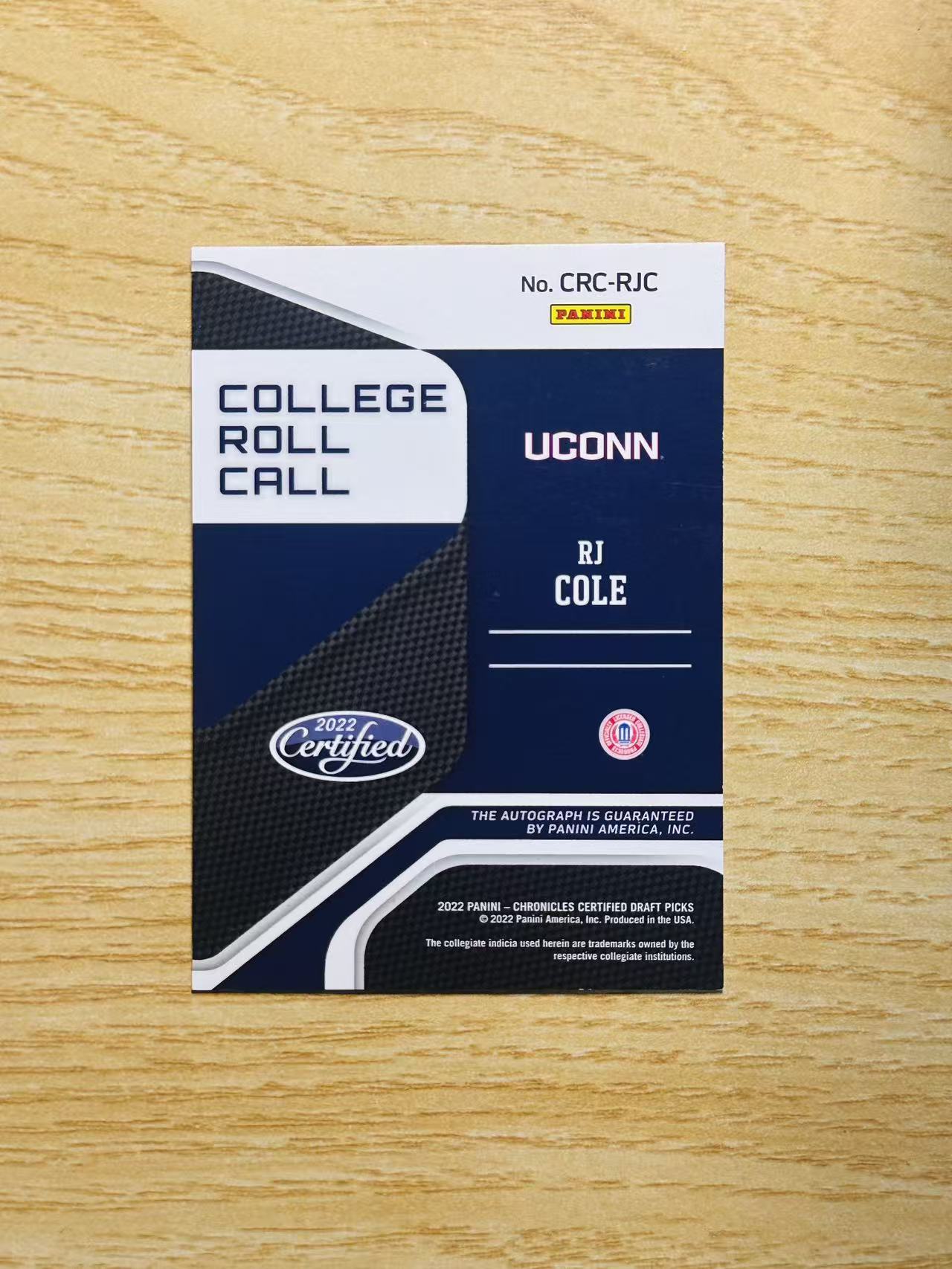 2022 Panini Totally Certified RJ Cole RJ 科尔 签字 大学 卫生巾